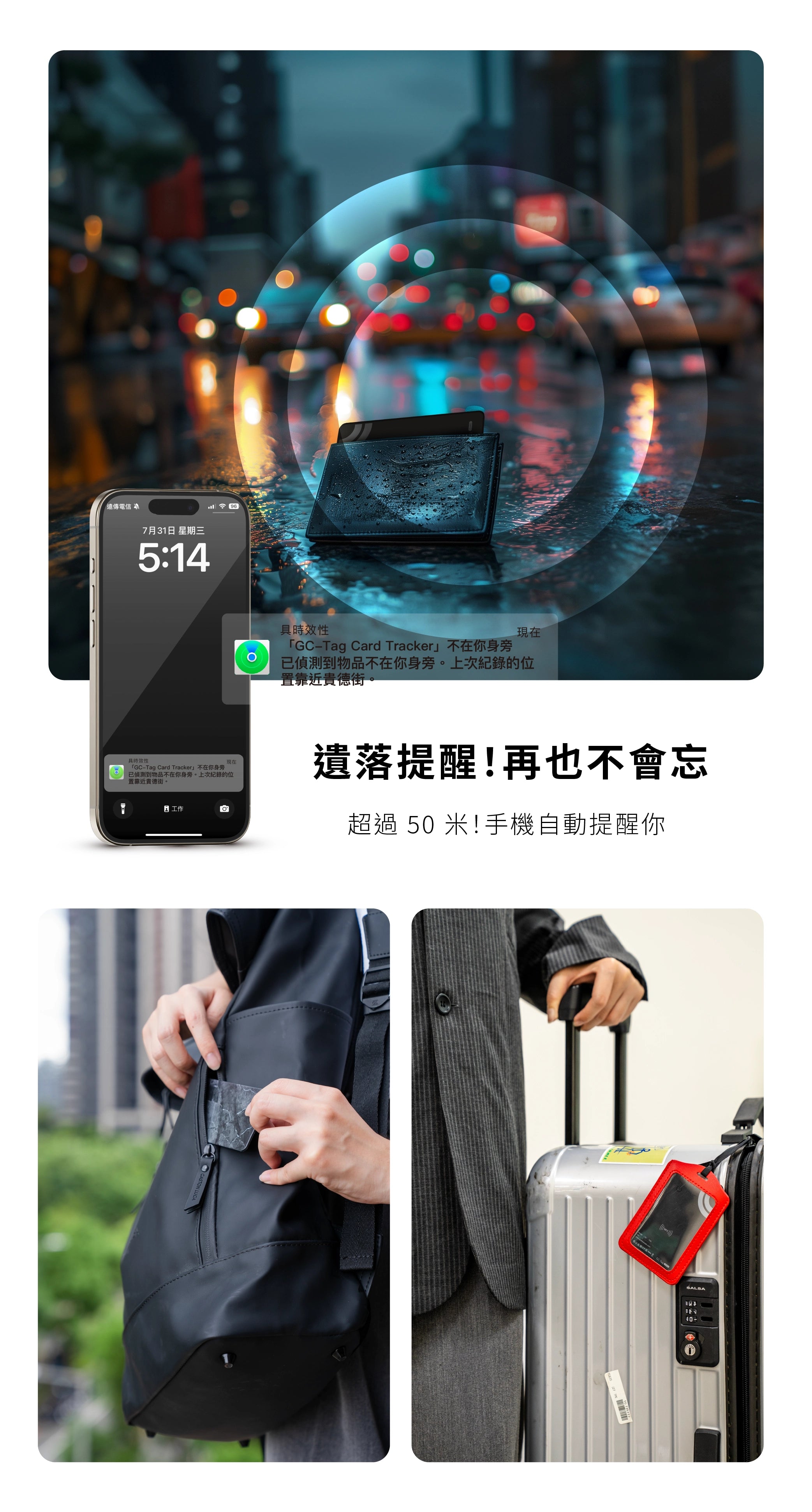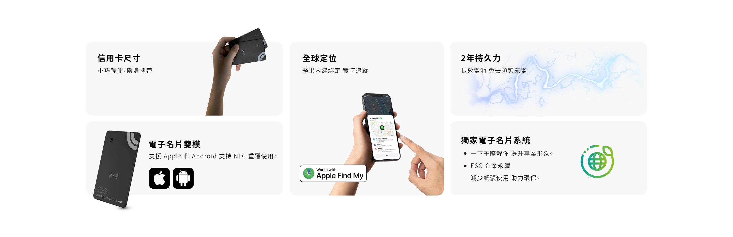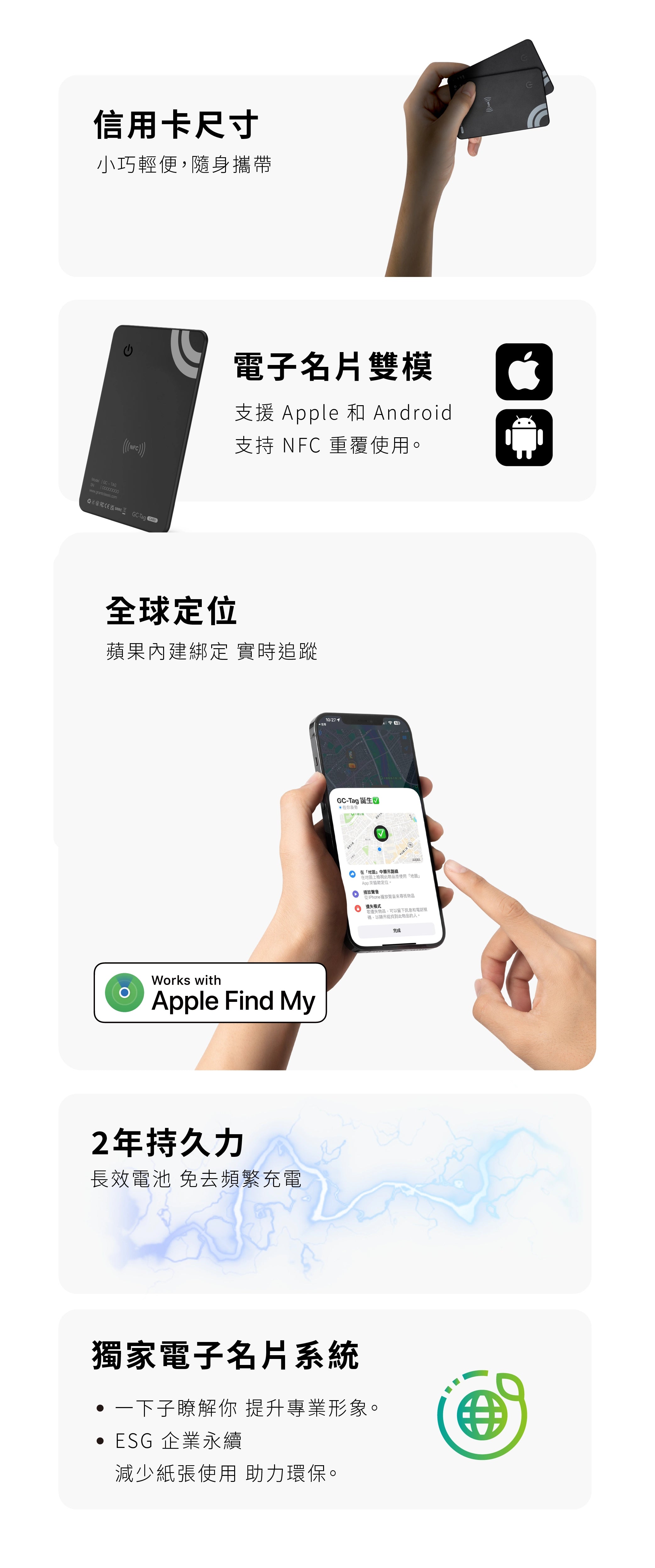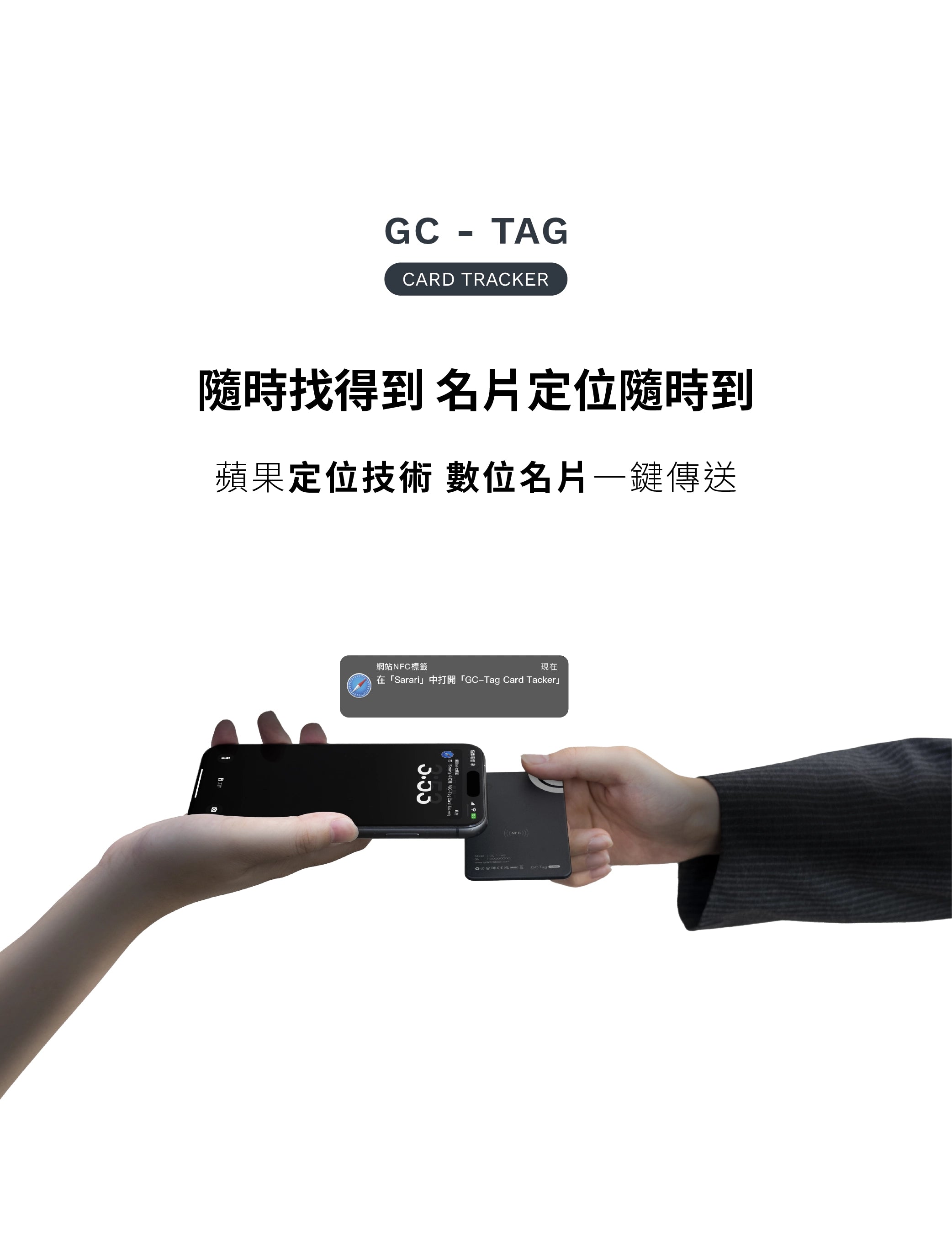 GC-Tag Card 可以用來追蹤您的錢包、包包、行李等個人物品,甚至可以作為電子名片使用。