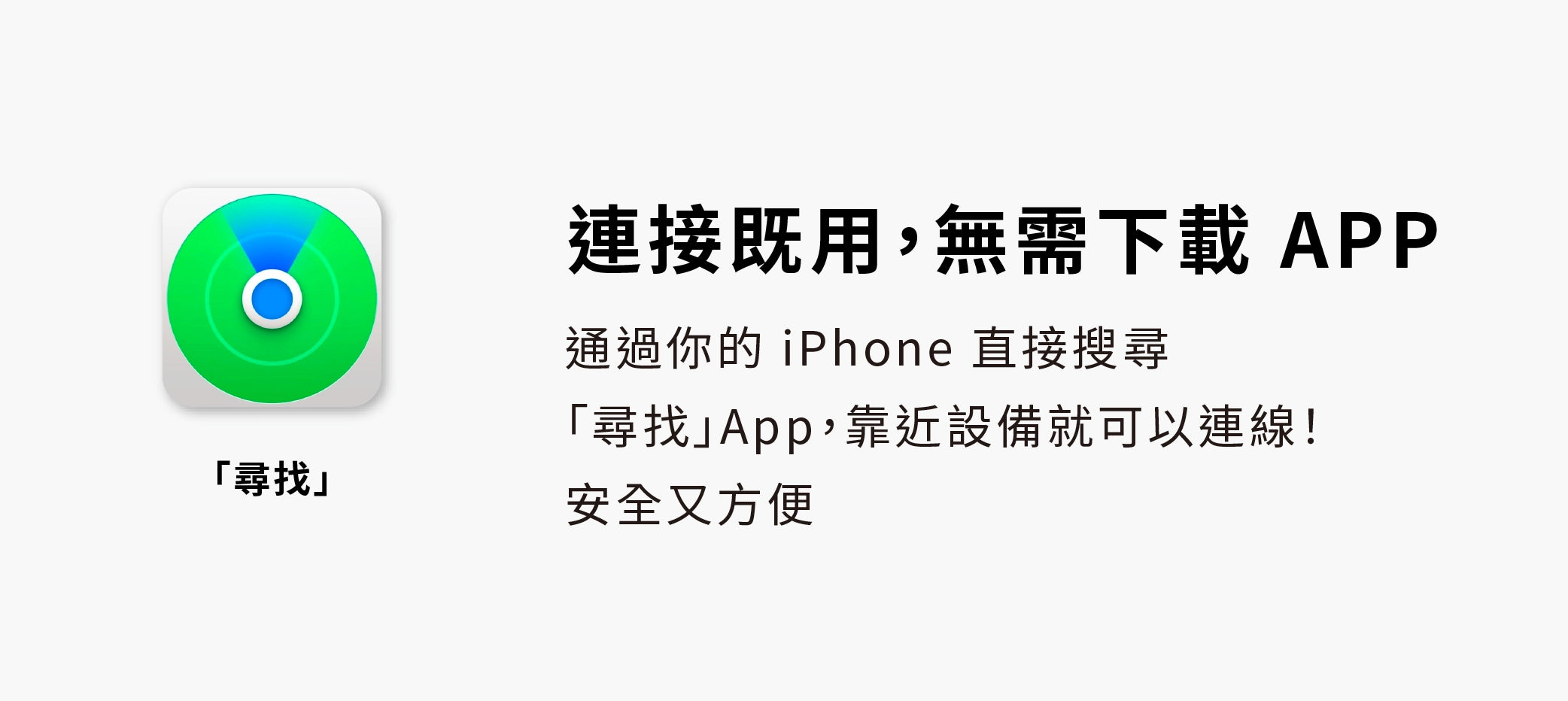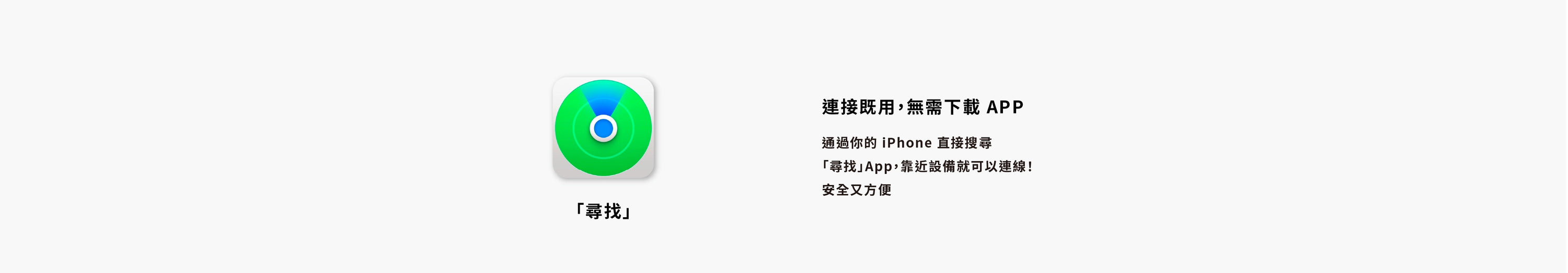 - 蘋果系統結合:直接使用 iPhone「尋找」既可連接。