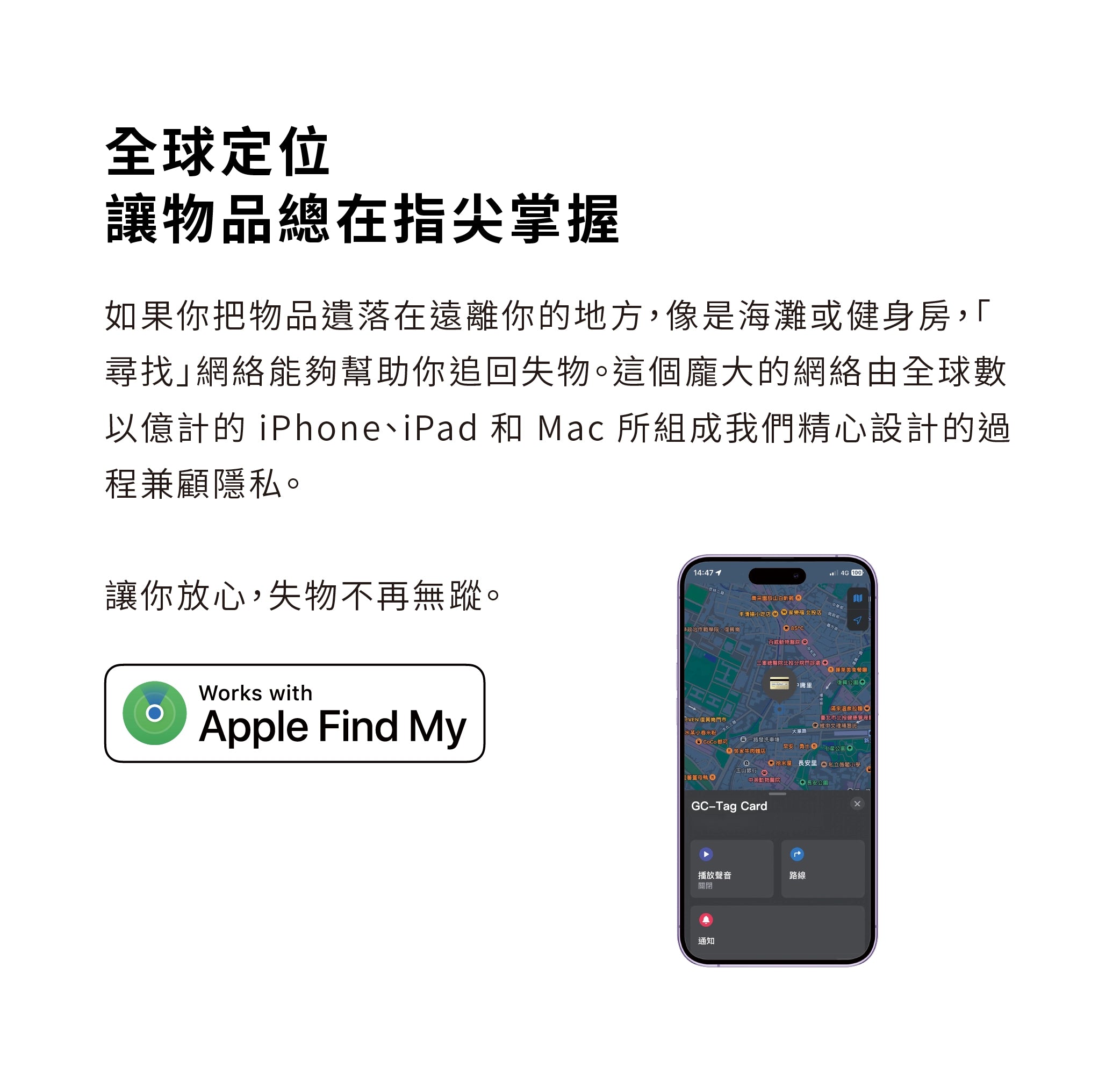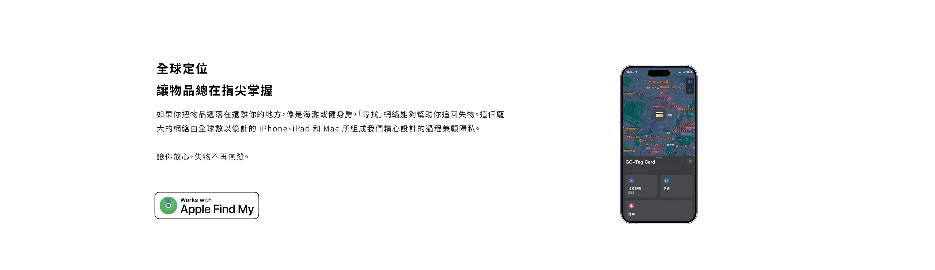 是的,GC-Tag Card 已經通過蘋果 MFI 認證,確保與 Apple 設備的完美兼容性。