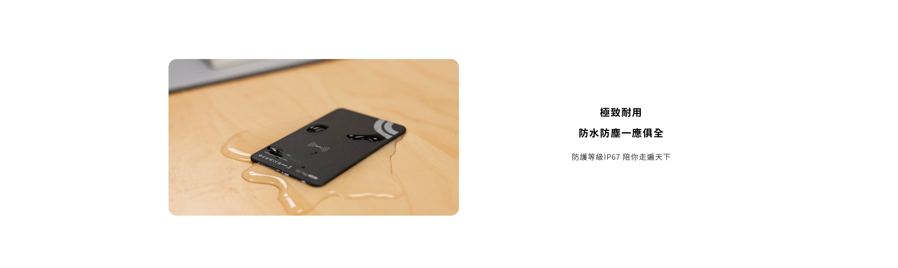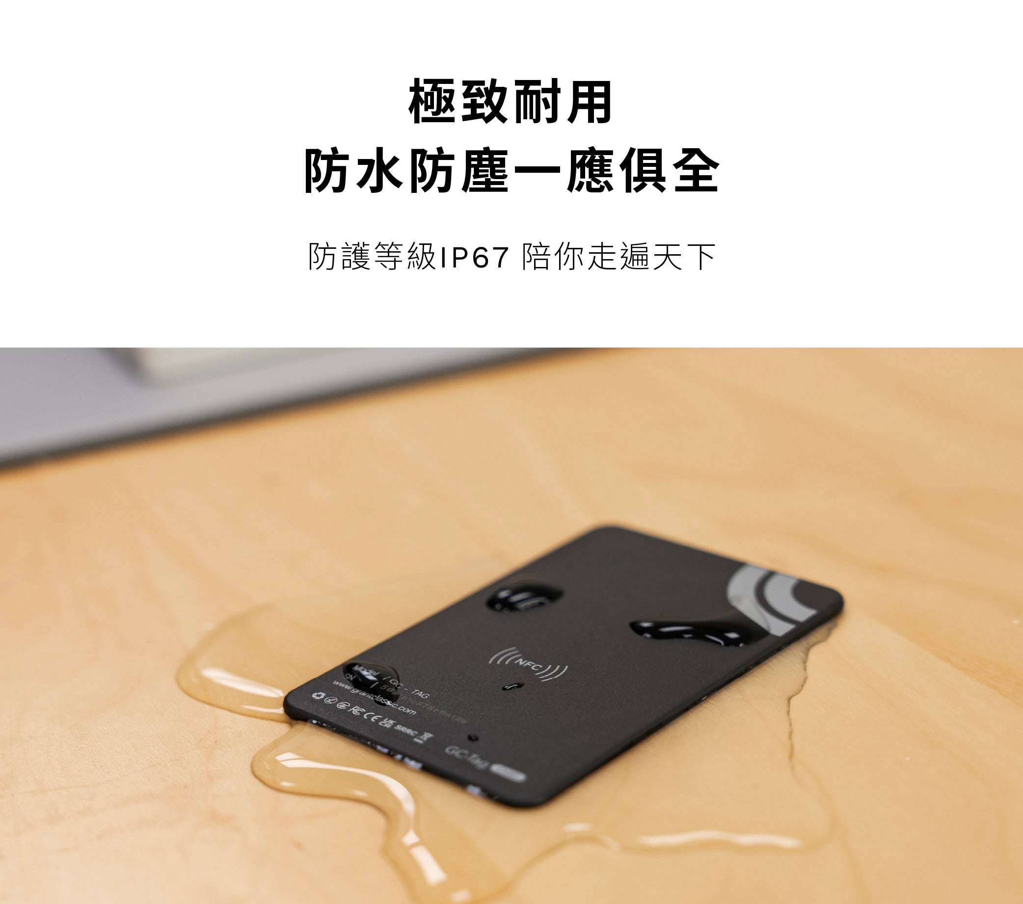是的,GC-Tag Card 具備 IP67 防水防塵功能,可以在日常使用中保護您的設備。