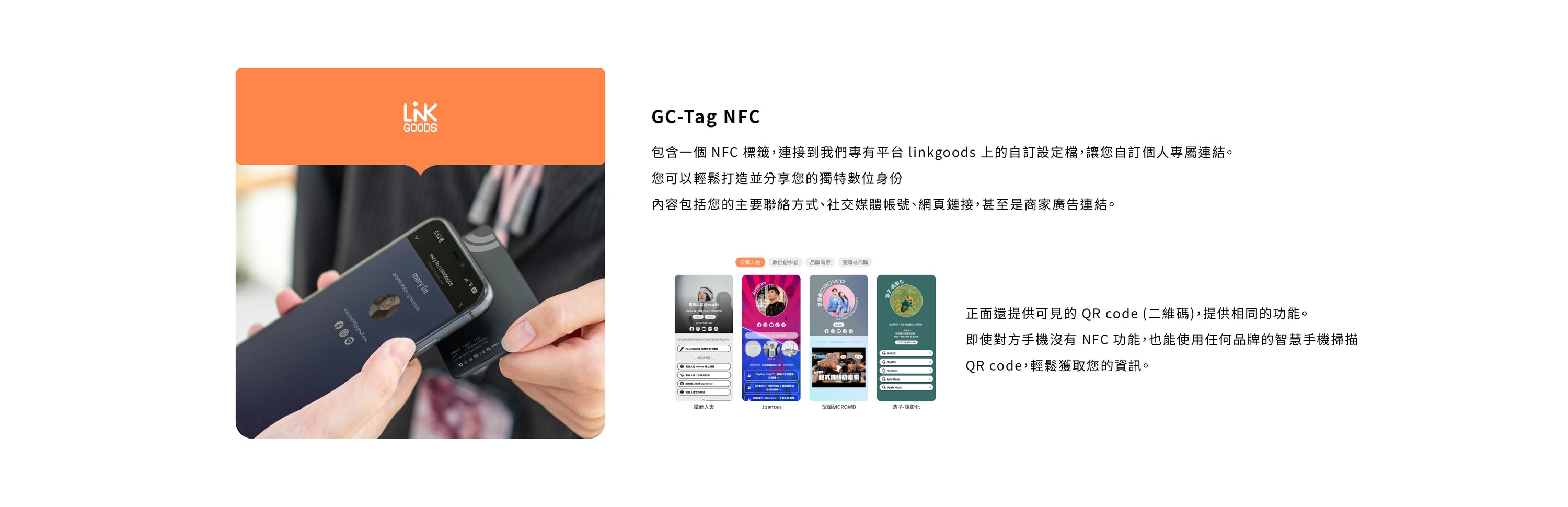 GC-Tag Card 的數位名片信息存儲是加密的,僅能通過掃描特定的卡片來訪問,確保您的個人信息安全。