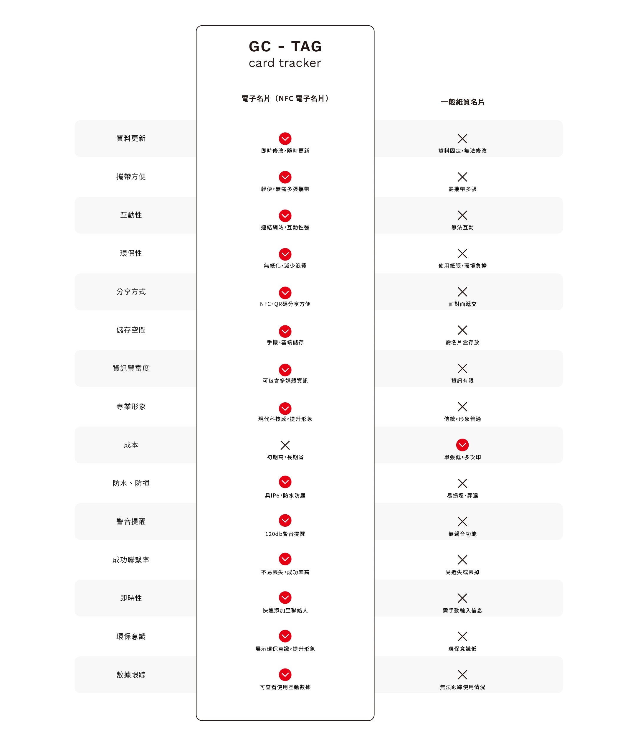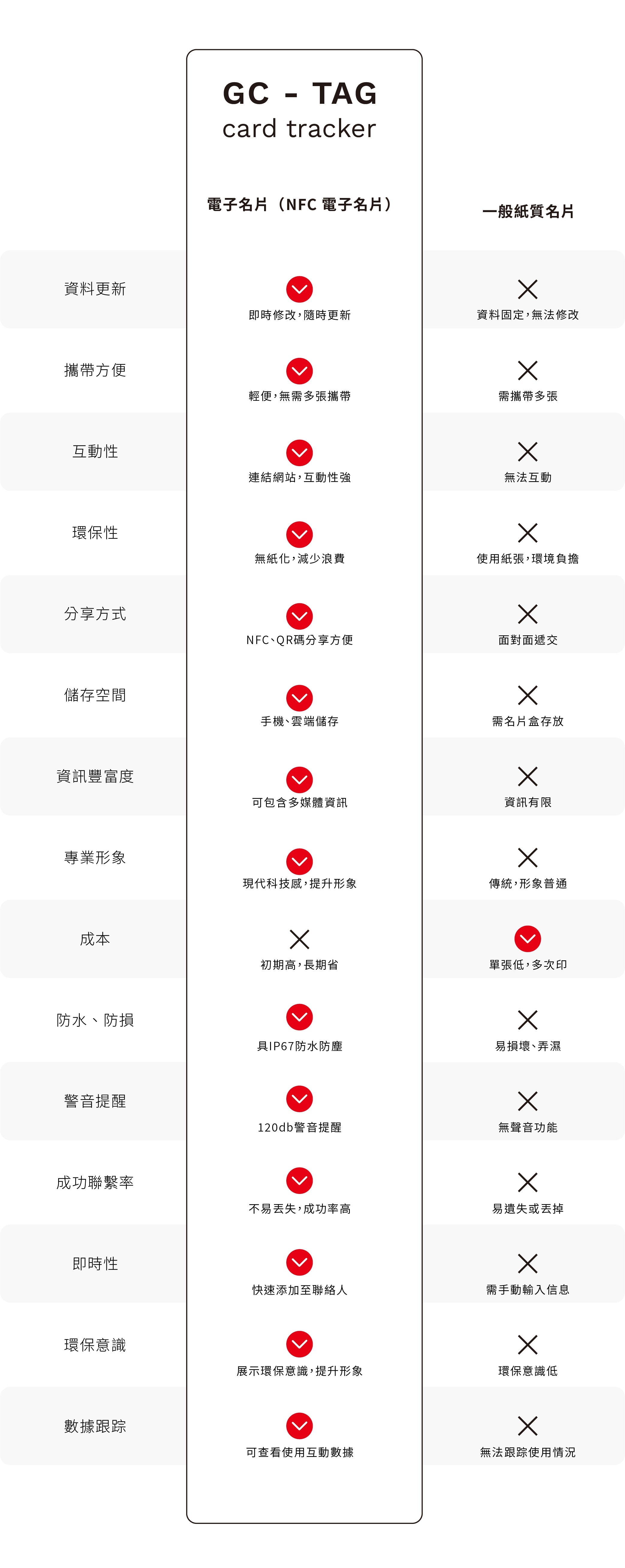 GC-Tag Card 的大小與信用卡相同,非常輕薄,適合隨身攜帶。