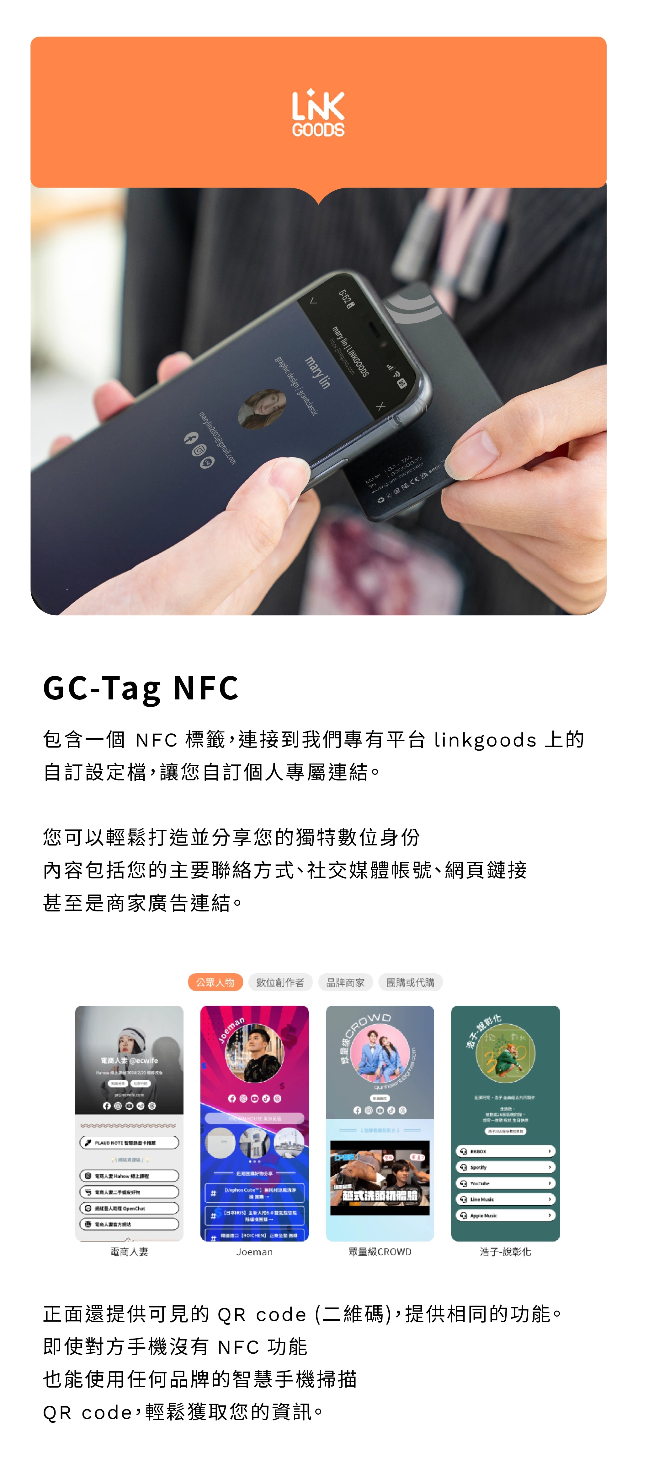 只需使用我們的應用程序,輸入您的聯繫信息,並將其存儲在 GC-Tag Card 上。當其他人使用手機掃描卡片時,他們就能夠立即查看並保存您的數位名片。
