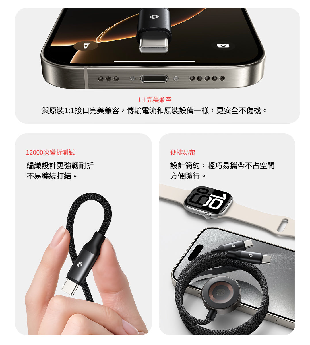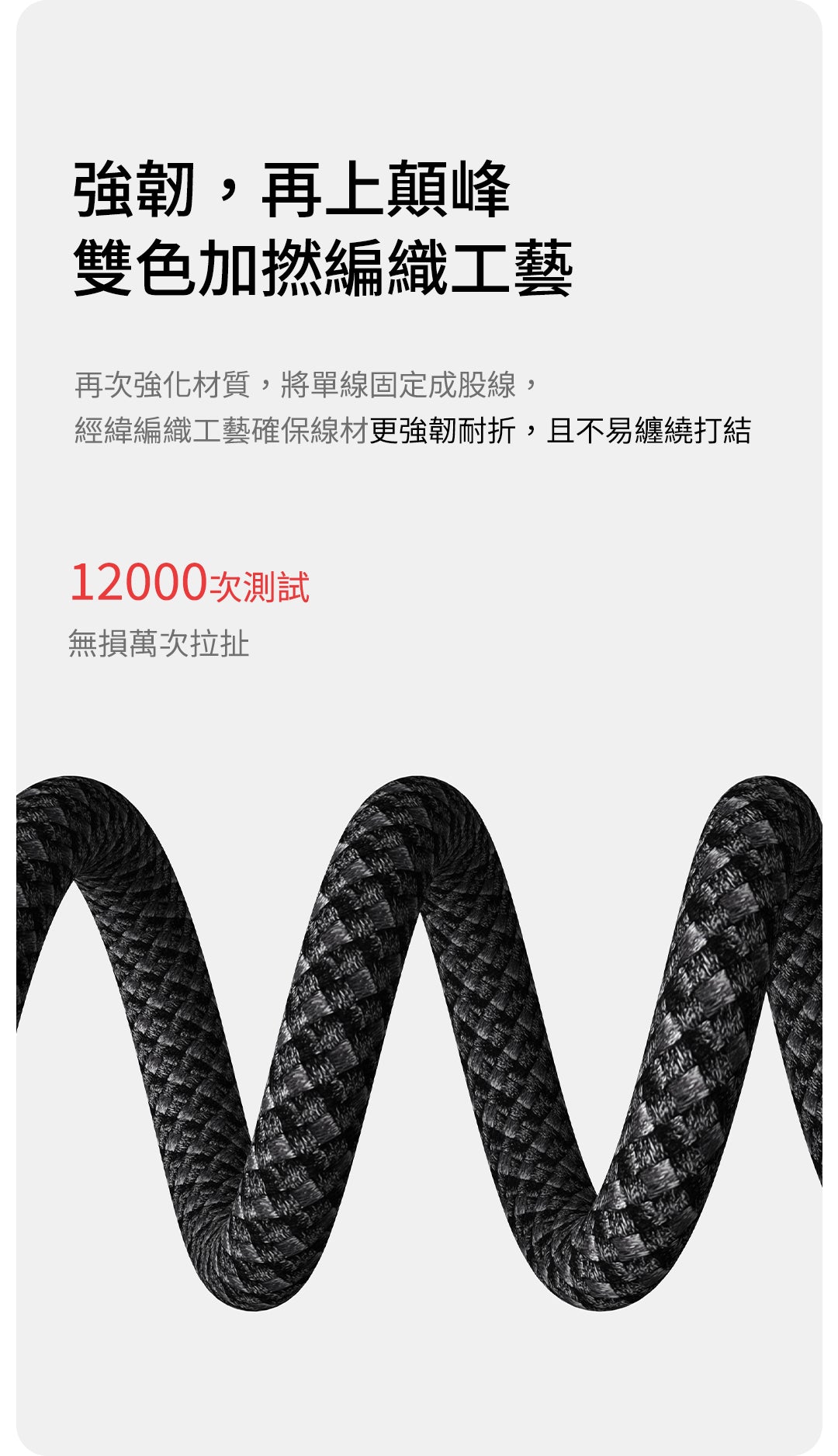 尼龍編織耐用線身:通過 30,000 次彎折測試,不纏繞、不斷裂