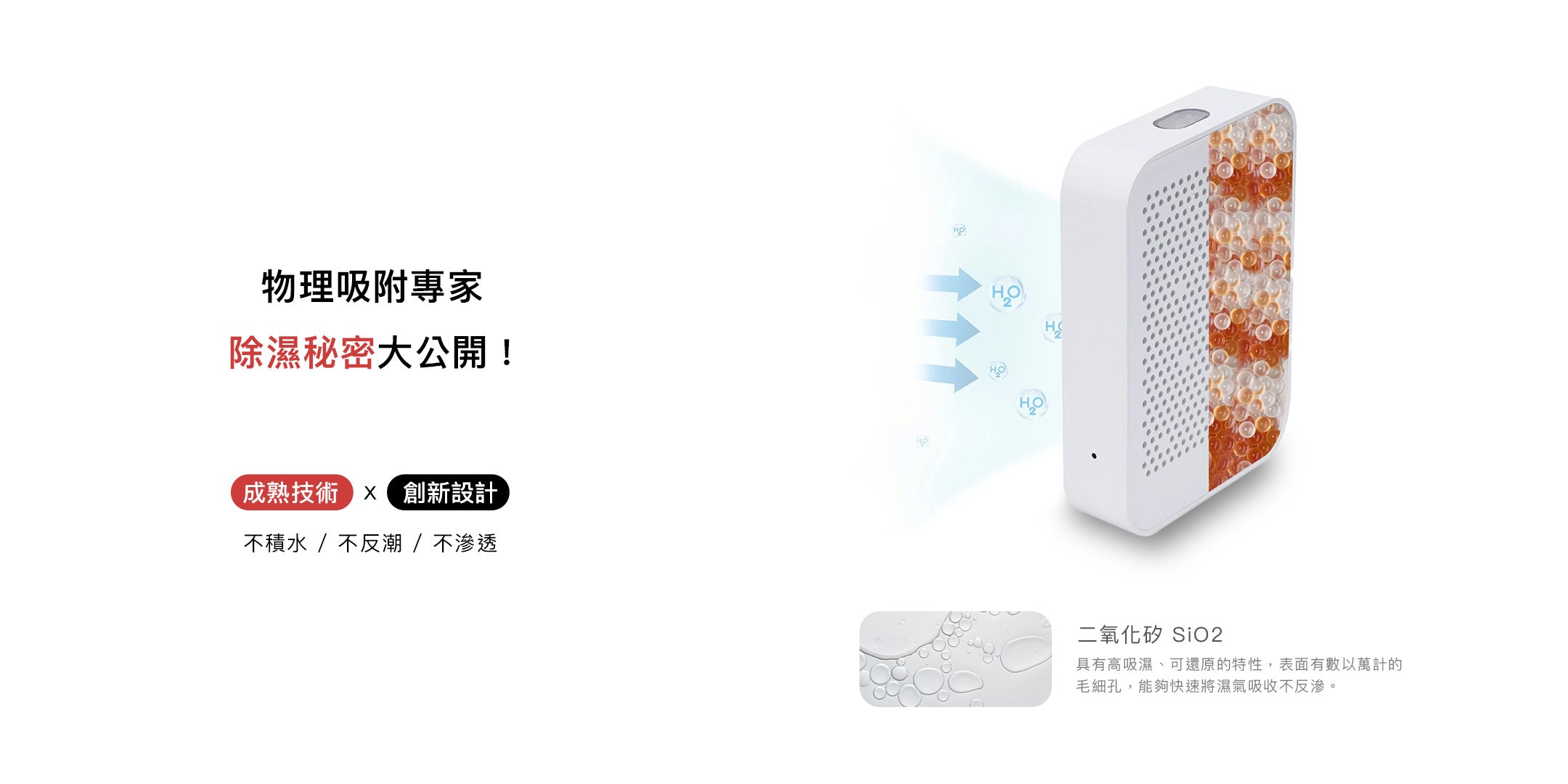 Cypure 再生除濕盒使用可視化濕度指示球。當顆粒呈現透明時,代表水氣已飽和,需進行再生;當顆粒恢復為褐色,則表示已回復乾燥狀態,可繼續使用。