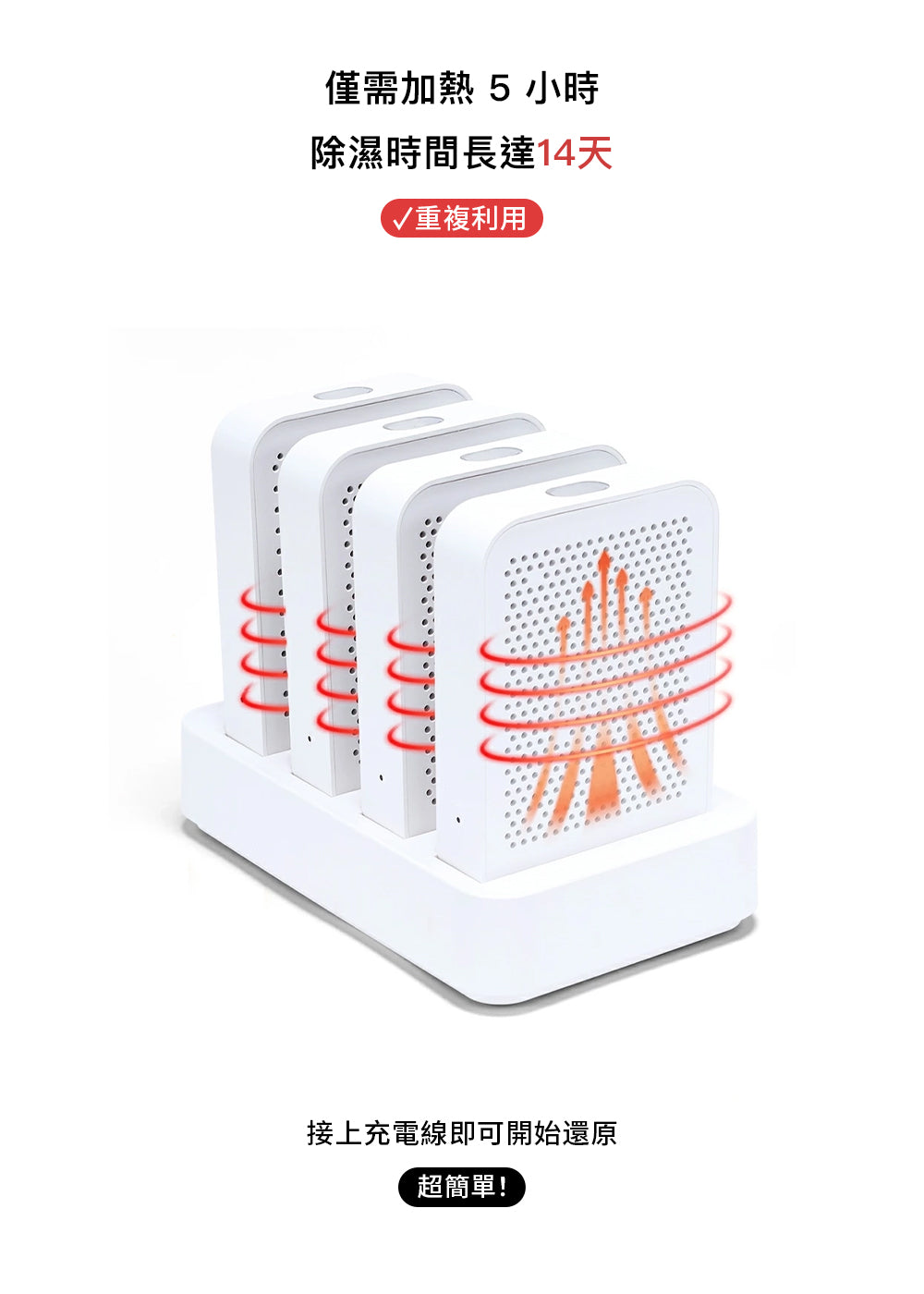 不需微波爐或日曬,只要插上附帶的 8 字電源線,Cypure 再生除濕盒就會自動啟動再生程序,大約數小時內即可完成乾燥,無需額外操作。