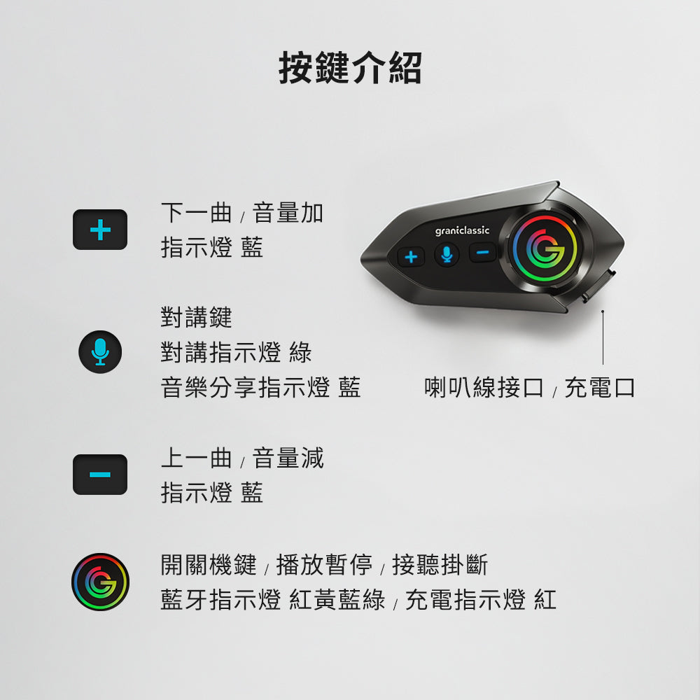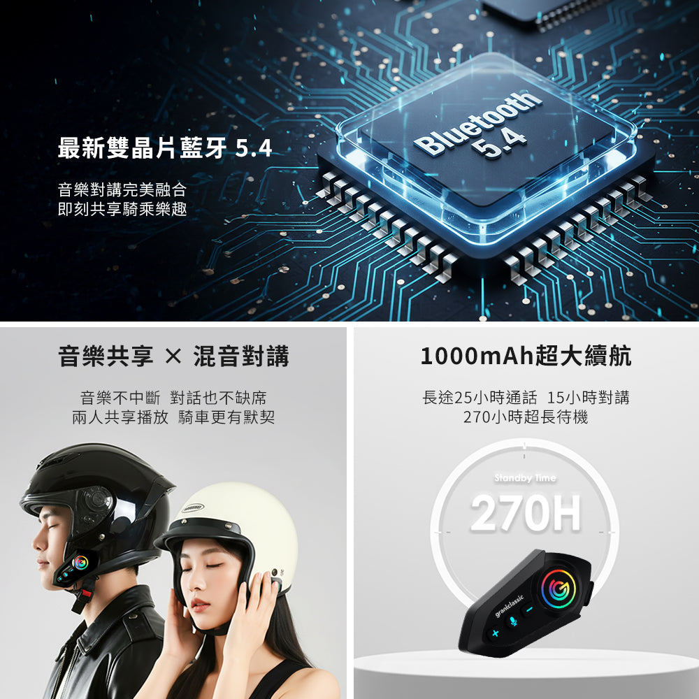 5.1000mAh 大電量:續航時間長,可長時間對講與播放音樂,滿足長途騎乘需求。