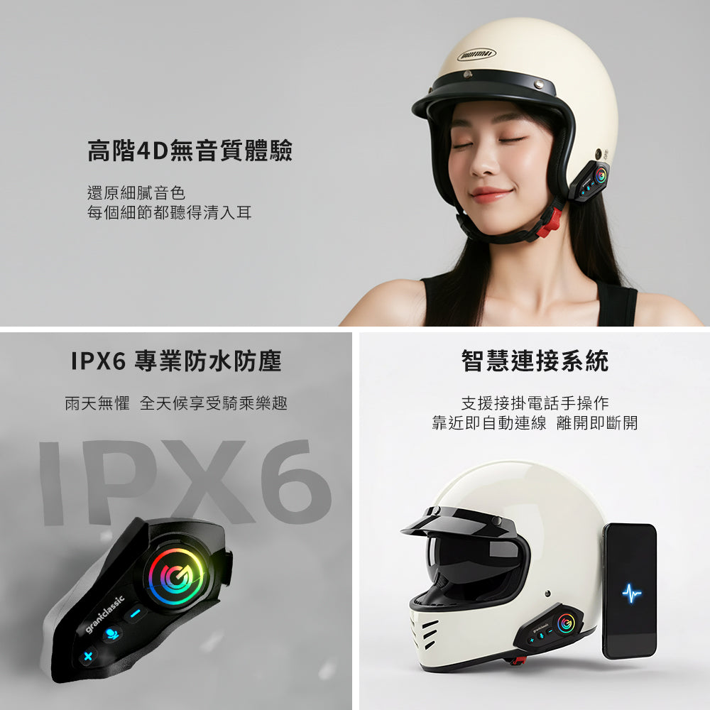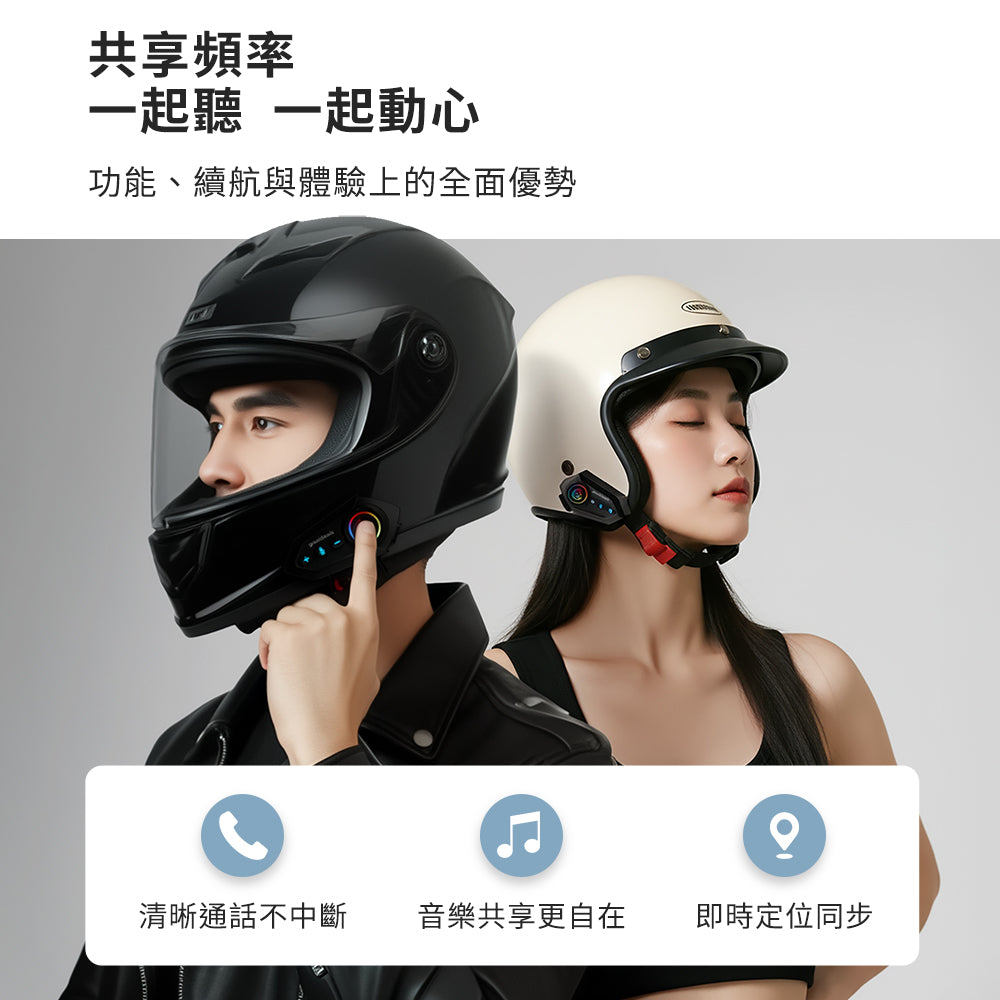 對講功能覆蓋 500 米,與同伴共享旅程零距離;劇院級音效呈現深沉低頻與清晰高音,為你帶來沉浸式聽覺享受。