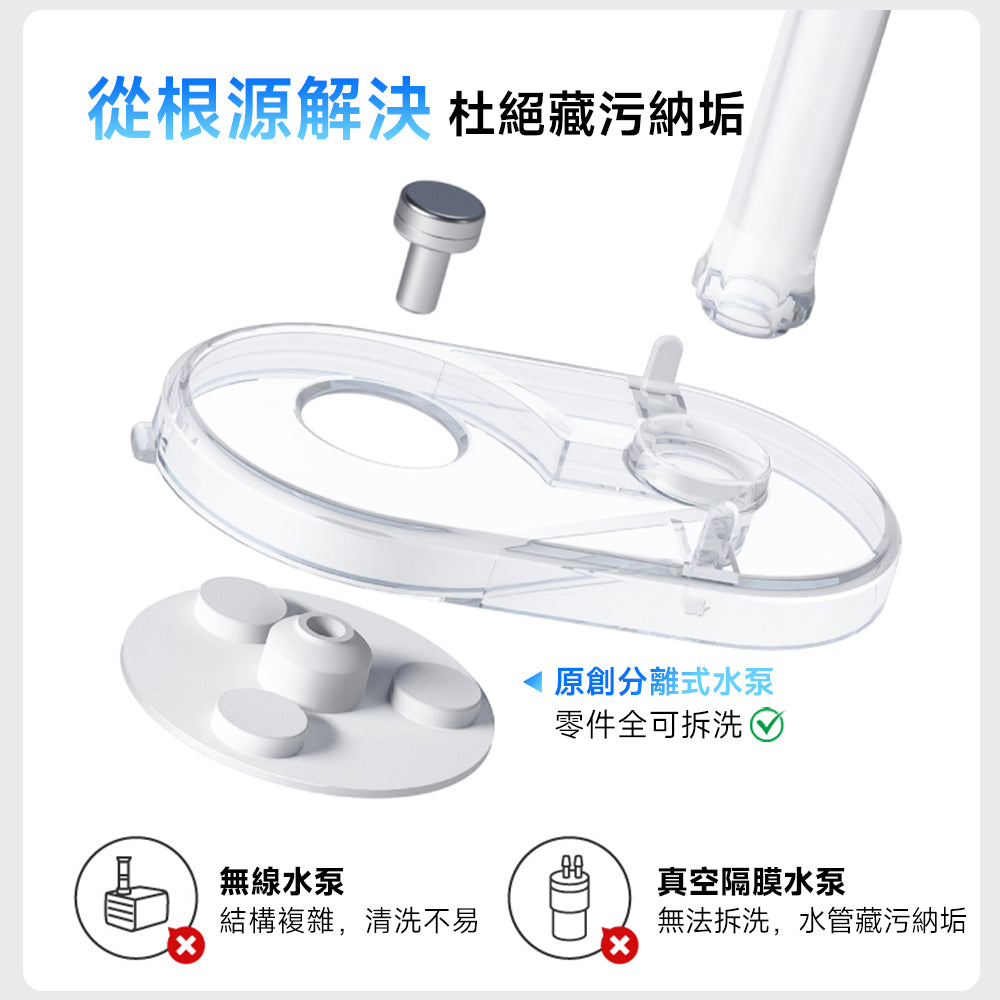 喝不停 MAG AquaLux 飲水機設計為全機可拆卸,無死角清洗,方便保持水源清潔。