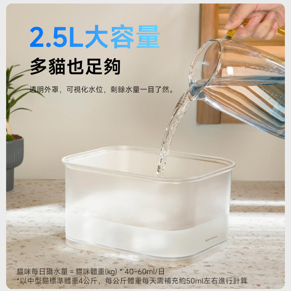 喝不停 AquaLux 飲水機的容量為 2.5 公升,能夠滿足日常需求,適合寵物全天使用。