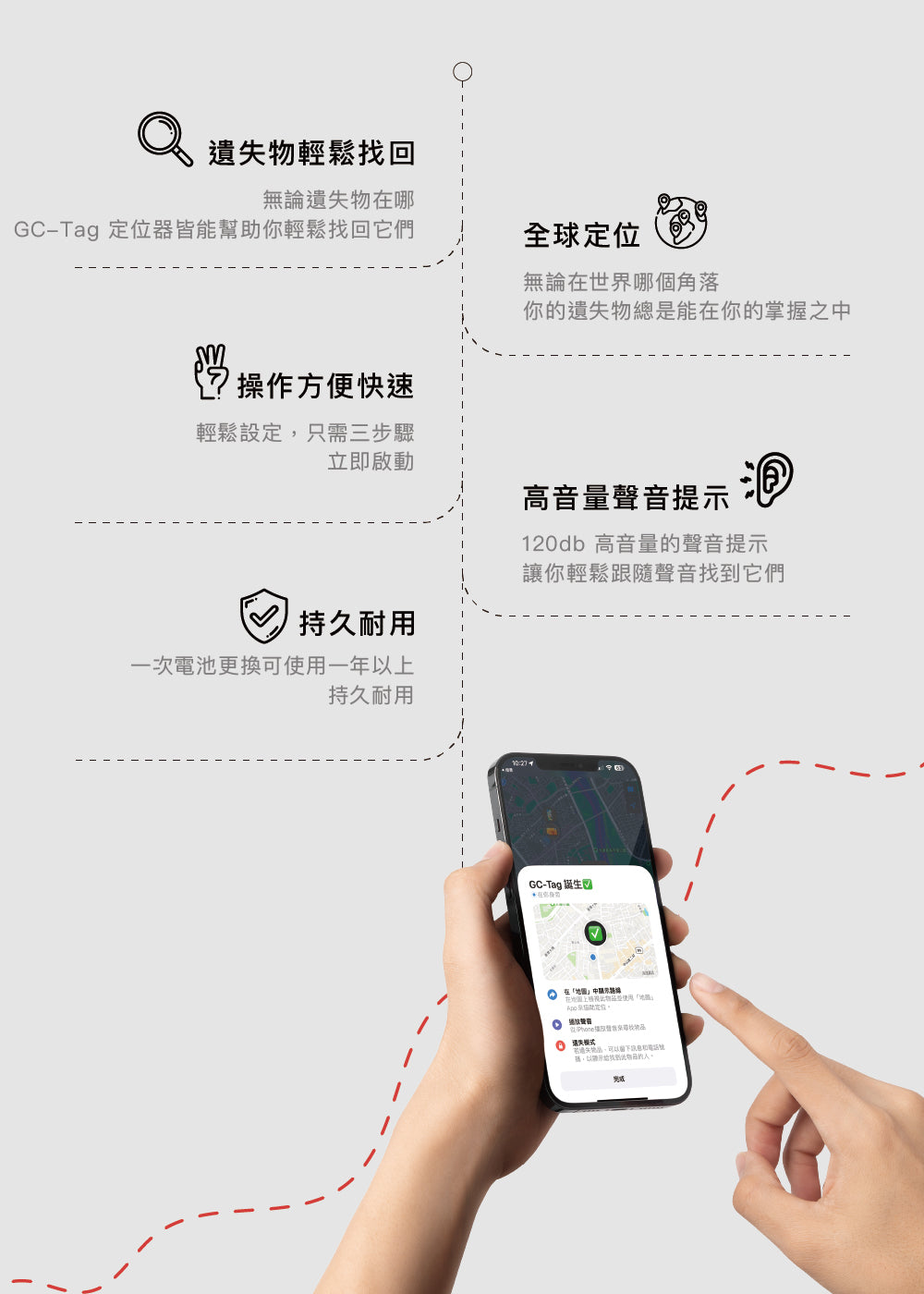 更重要的是,我們的全球尋找網絡將結合所有GC-Tag用戶的力量,幫助您在需要時尋回遺失的物品。選擇GC-Tag,讓生活更便利、更無憂!