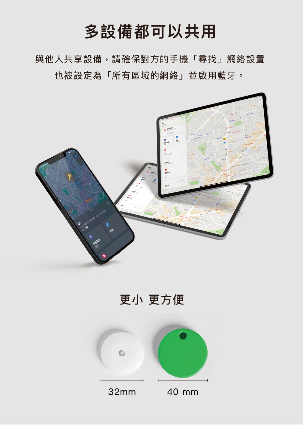 不是!GC-Tag 支援 iOS 和 Android 系統兩種版本,iPhone 用戶可直接用內建的「尋找」App 連接,Android 用戶則可透過「尋找我的裝置」App 使用,同樣方便。