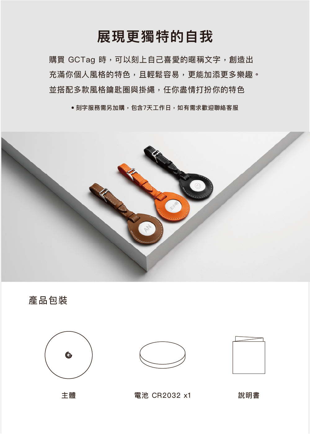 - 多款顏色選擇:提供多種顏色選擇,讓您的GC-Tag個性化,突顯個人風格。