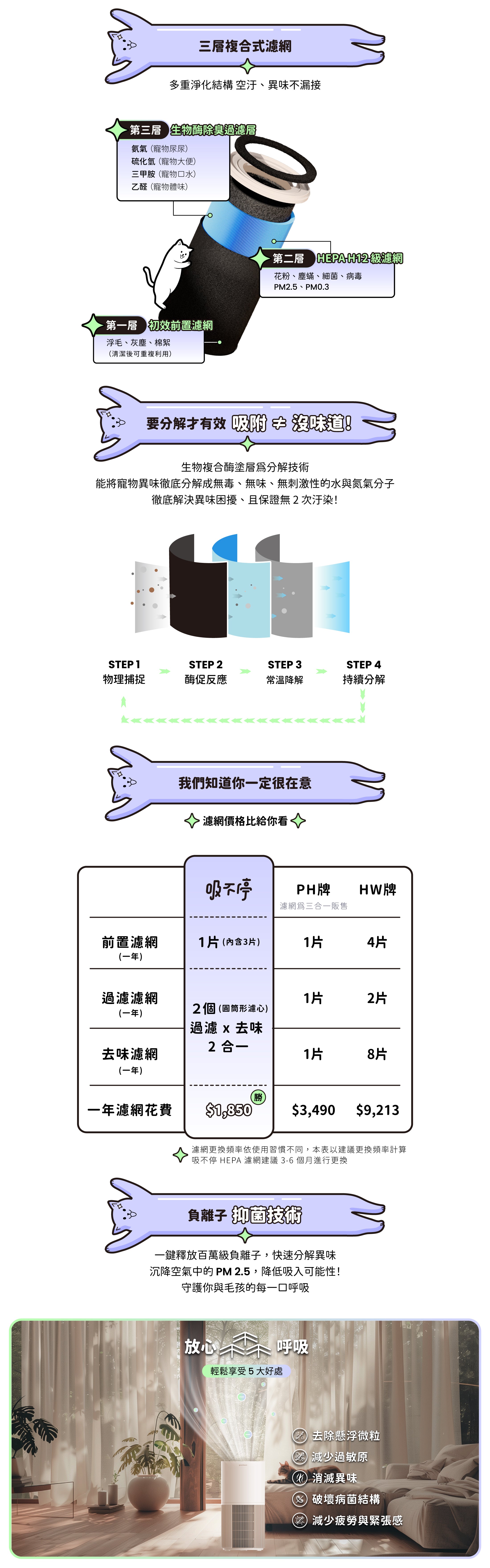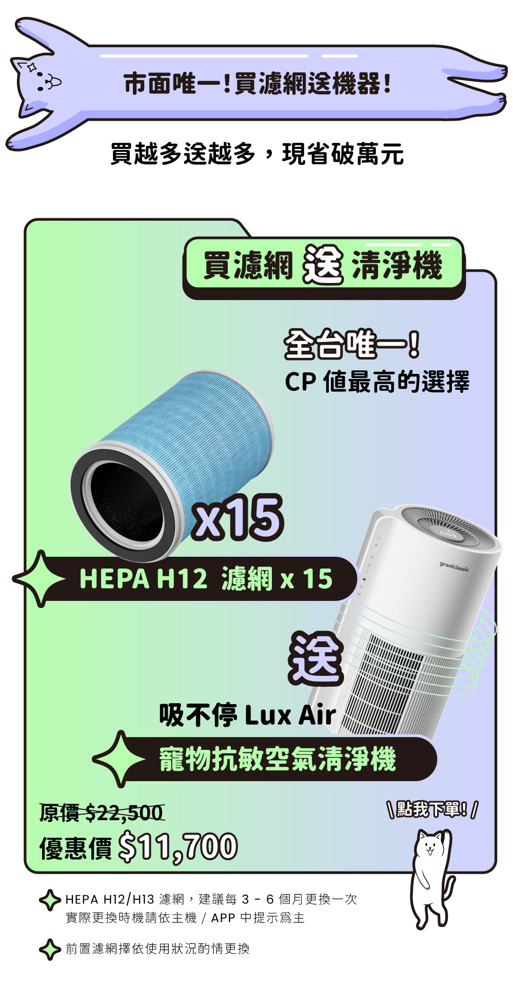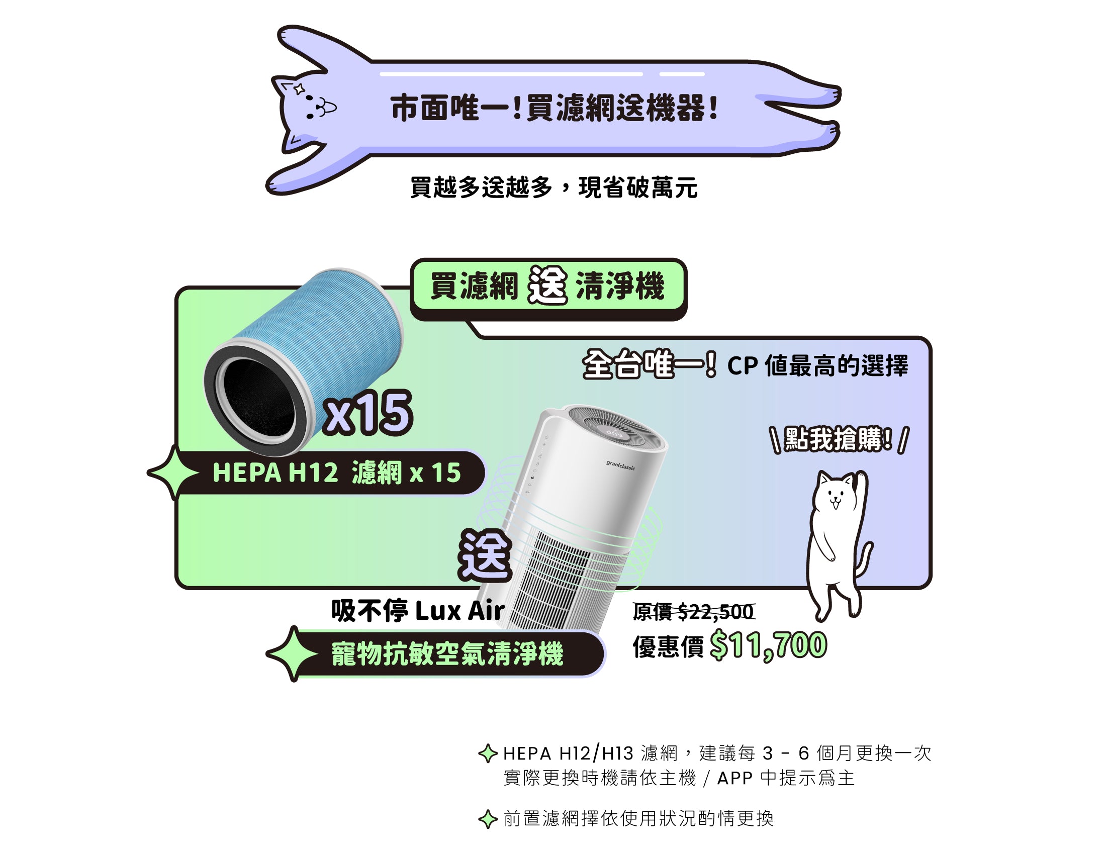 *HEPA 濾網建議直接更換,避免重複使用。