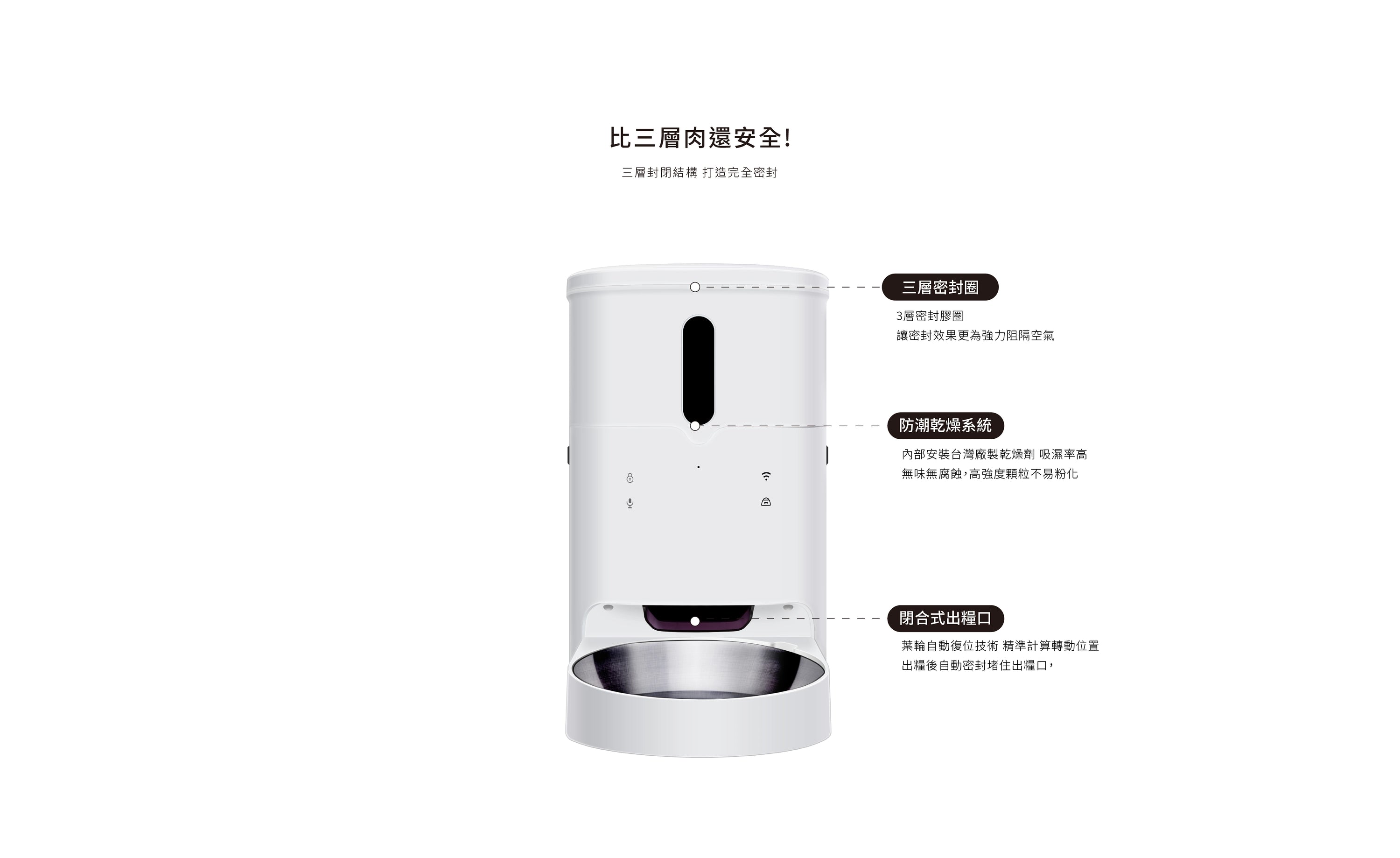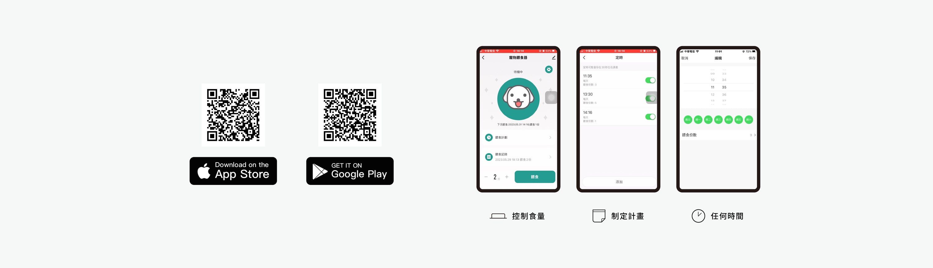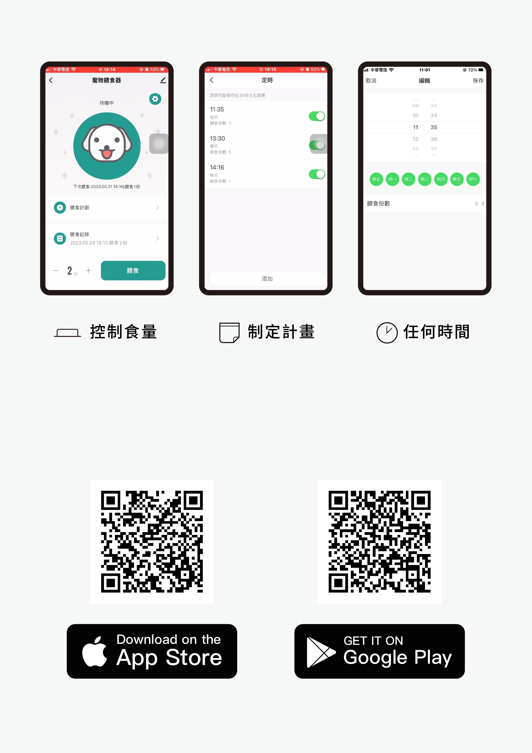 - 定時餵食:App設定,準時供餐。