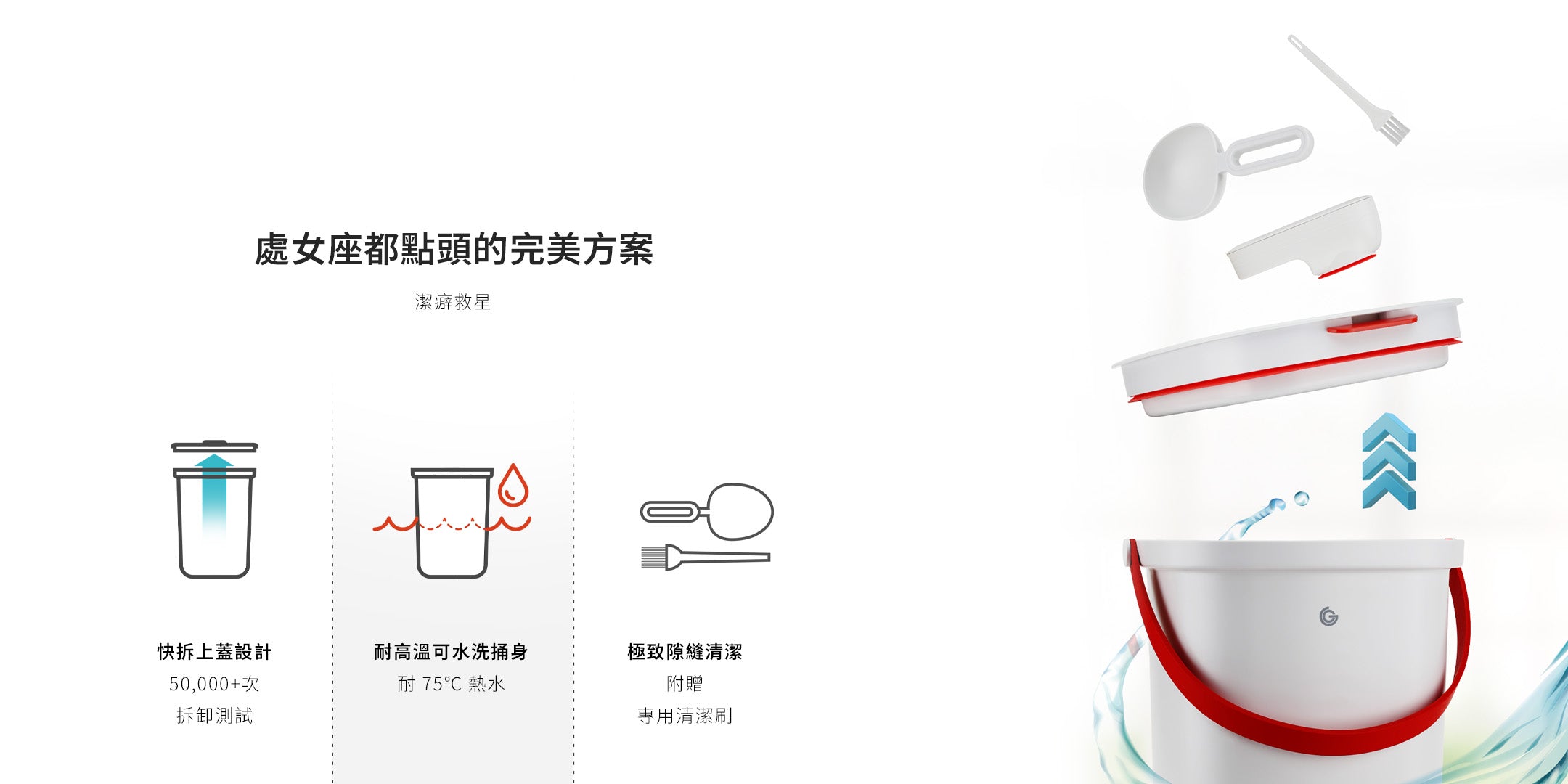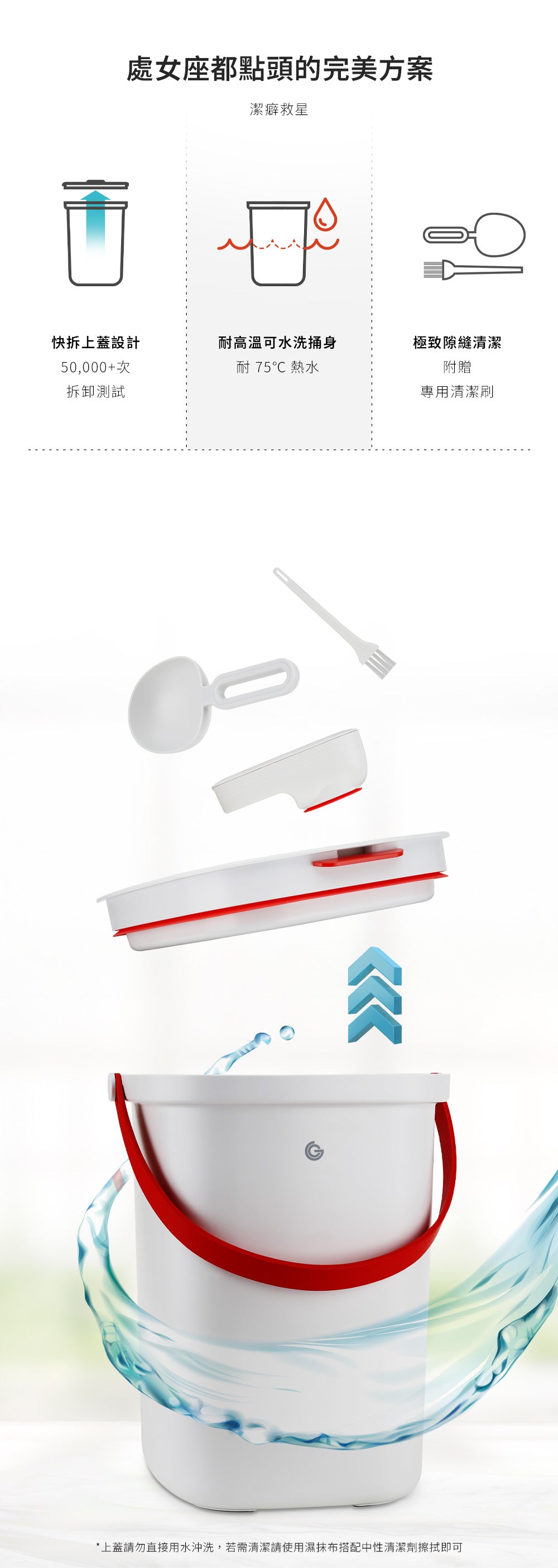 *請留意上蓋(含:分離式真空泵)非 100% 防水,清洗時請拆除上蓋;上蓋部分請以濕布擦拭髒污處即可。