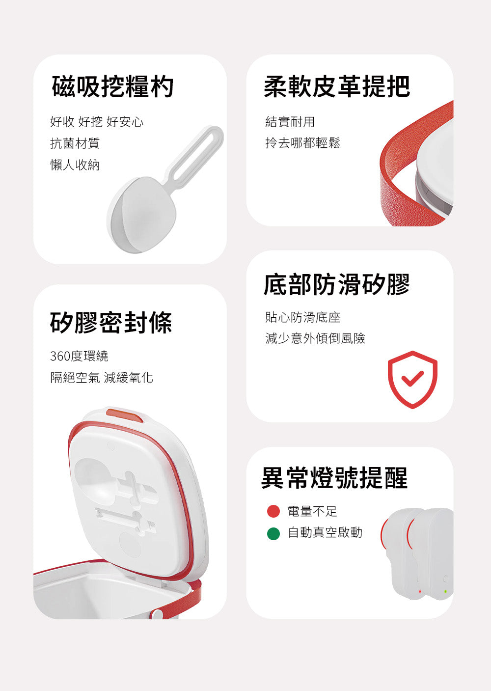 設計不只是外觀,更是品味的體現。這款真空儲糧桶擁有簡約高級外型,搭配未來感科技設計,不僅是實用工具,更是廚房與居家的時尚配件。大容量設計,無論你是多寵家庭、租屋族,還是注重食材品質的講究人士,都能滿足日常所需!