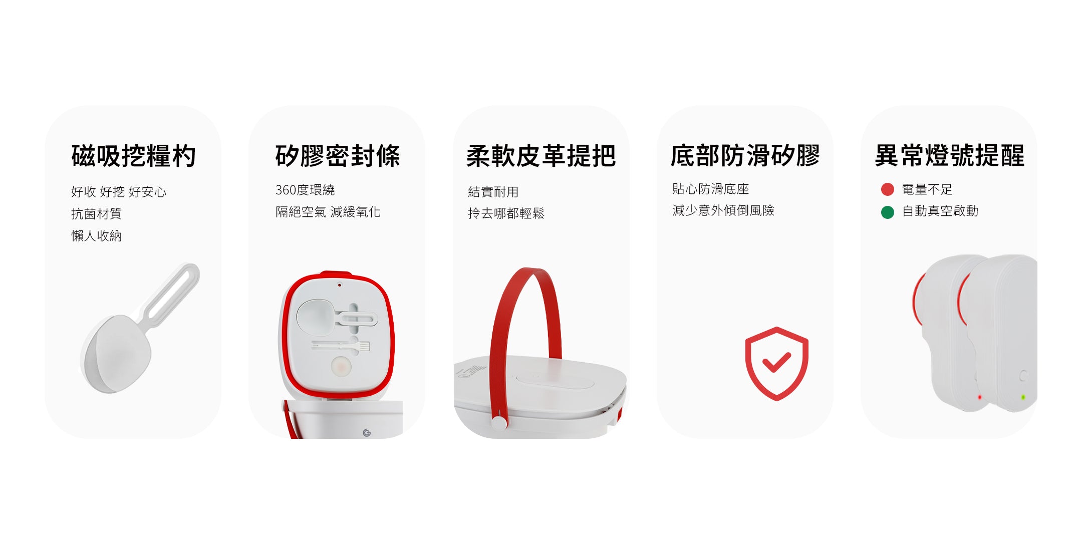 不建議存放液體、極細粉狀物(如糖粉)、發酵食品(如麵糰),以免影響真空效果或導致洩漏。