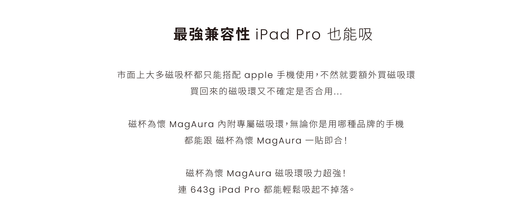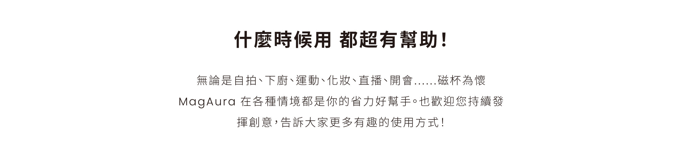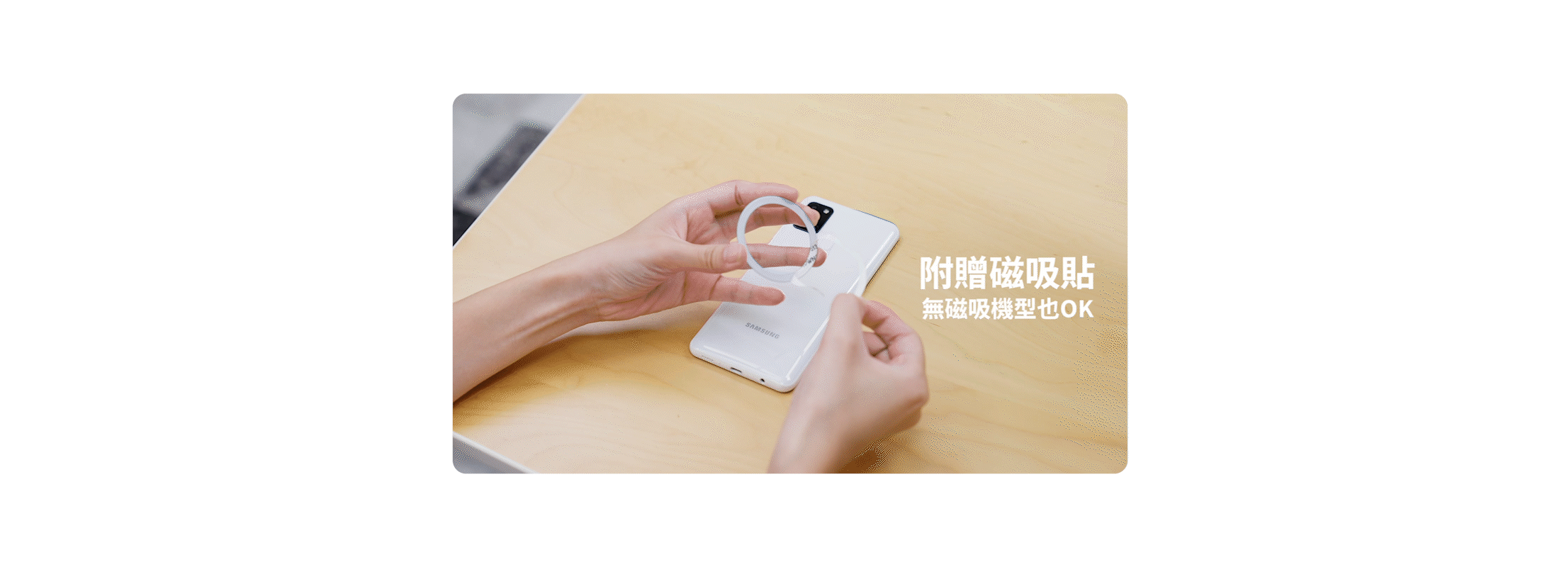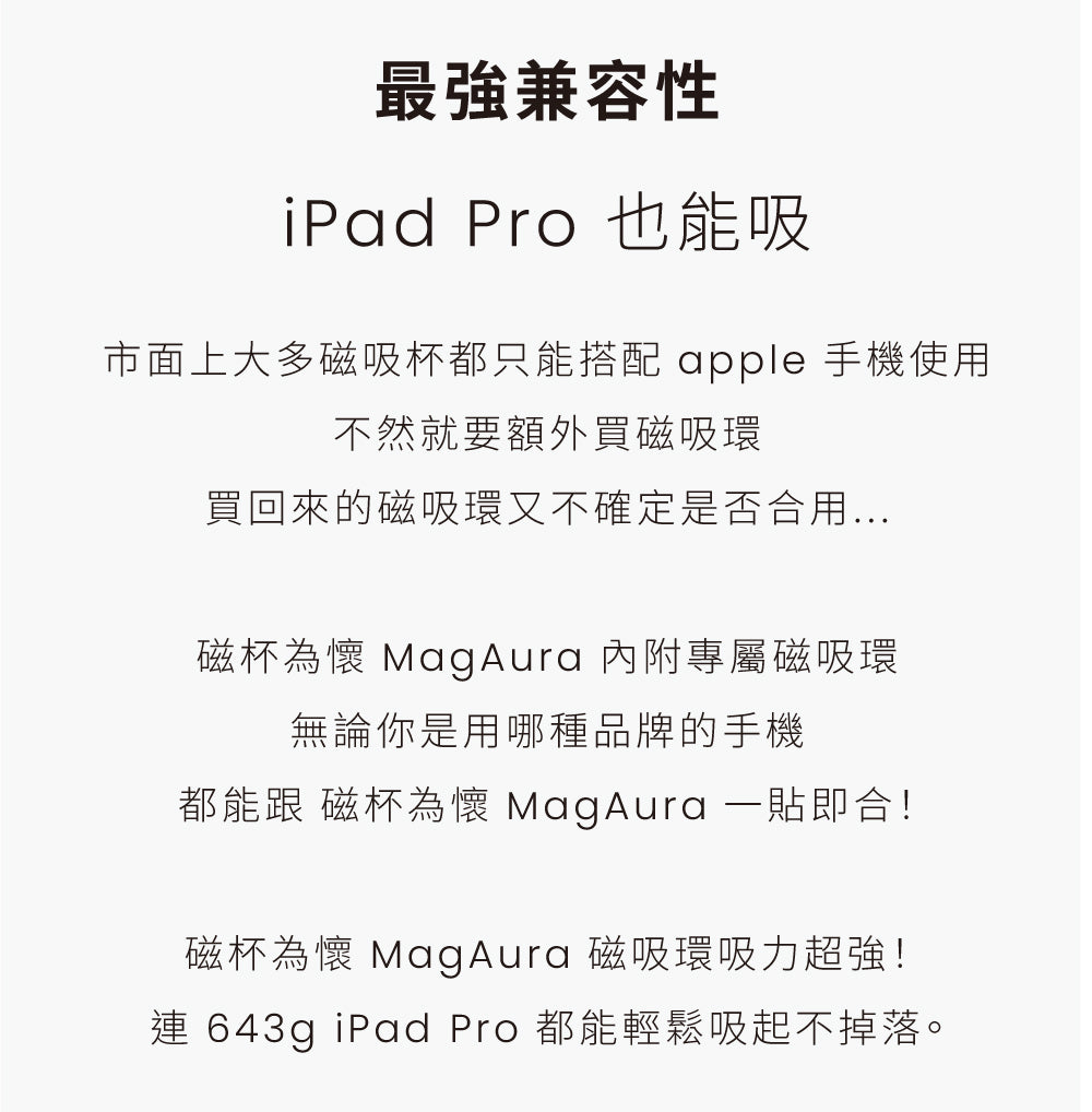 磁杯為懷 MagAura 內含 磁吸環*1 個,只要將它黏貼於欲使用的產品後方,即可搭配 磁杯為懷 MagAura 使用。