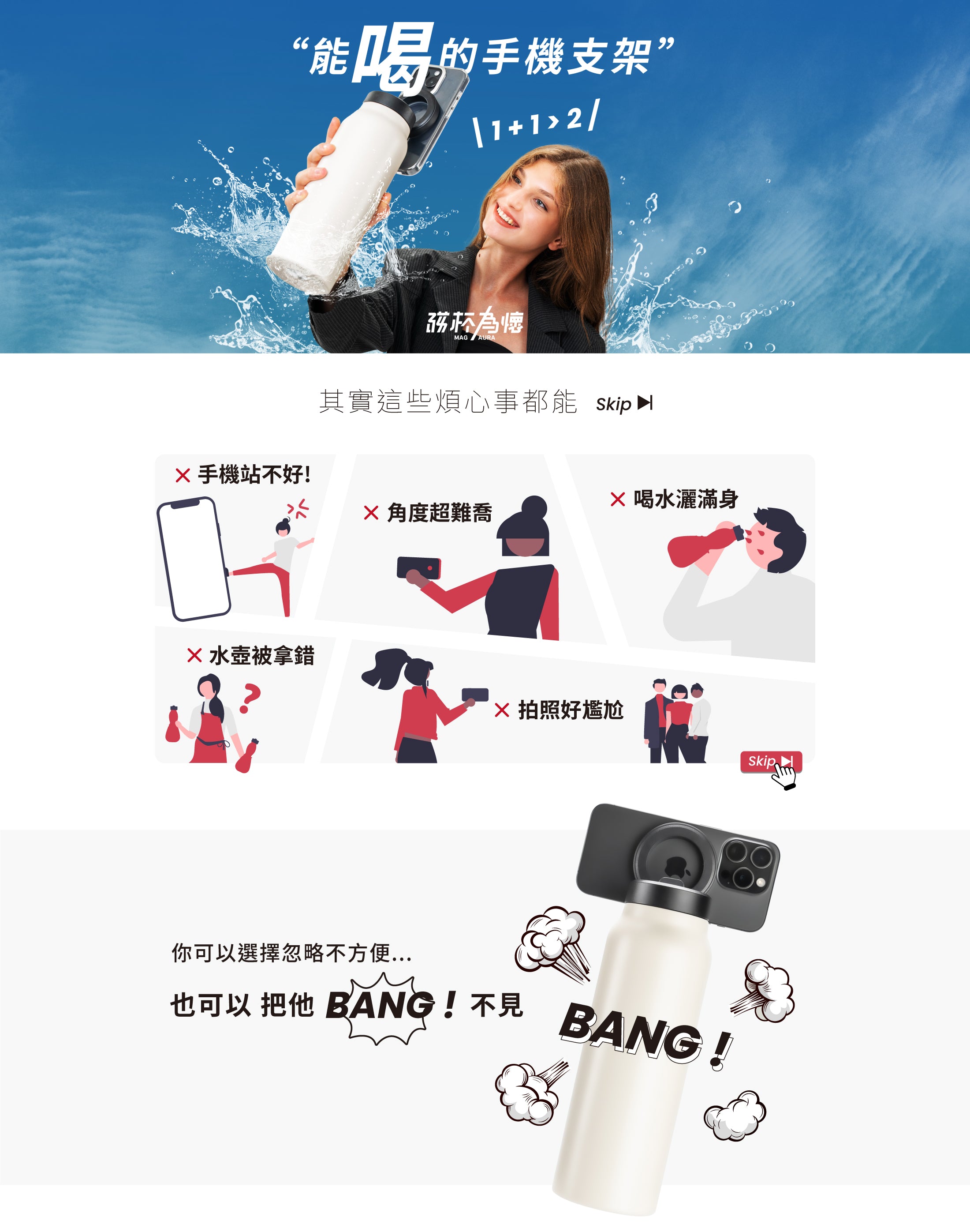 是的!磁杯為懷 MagAura 有特殊的結構工藝,無論水壺是否裝滿,都能穩定支撐手機。