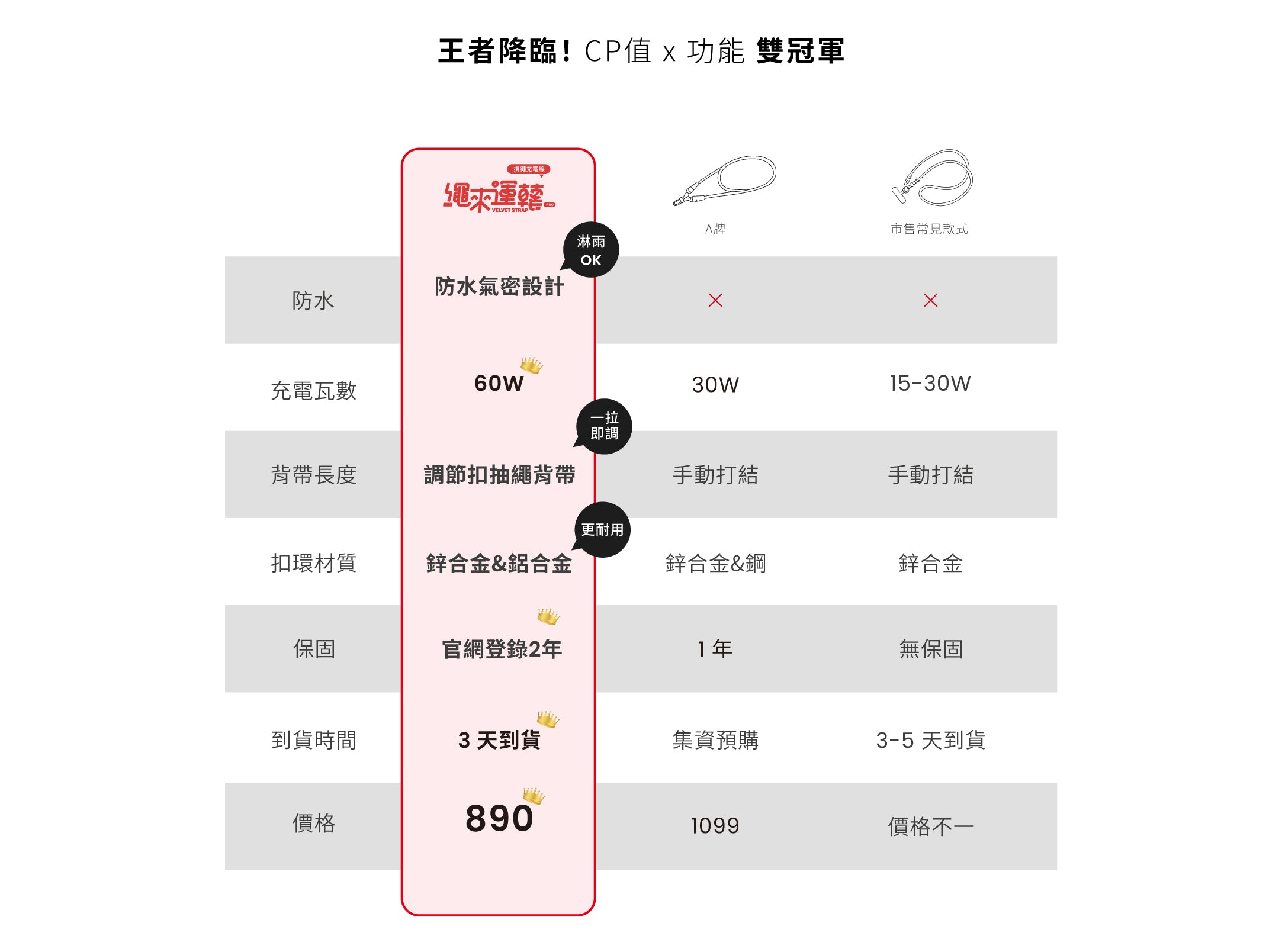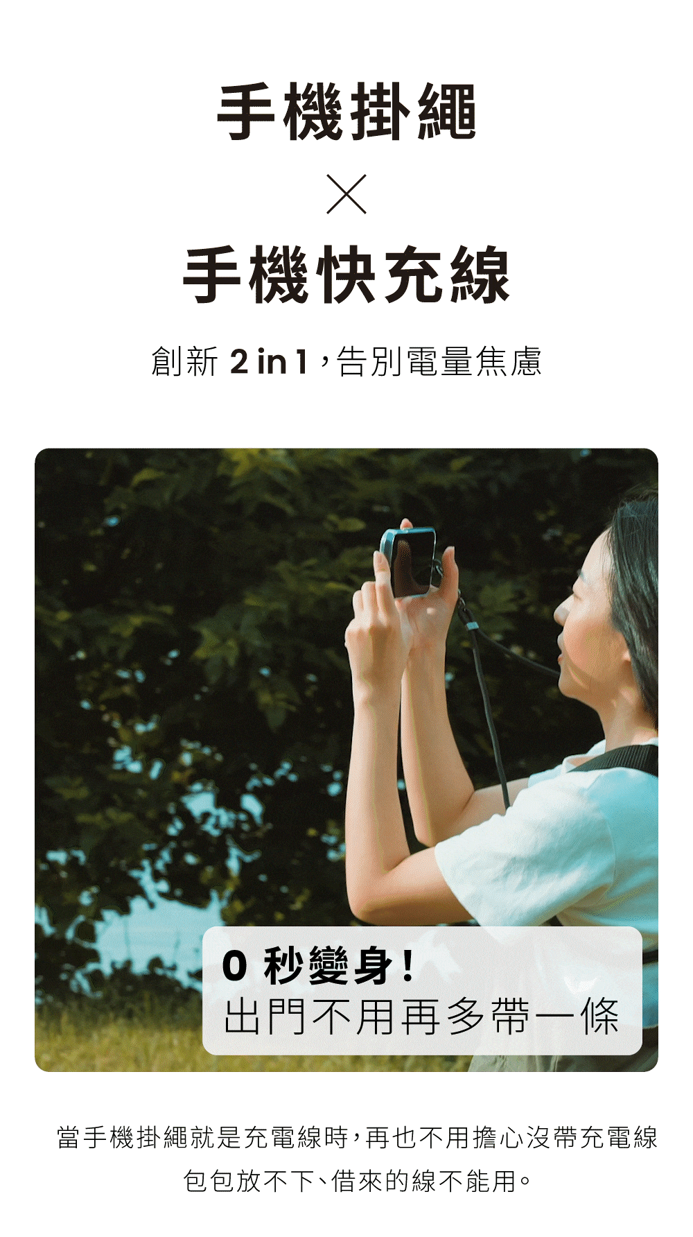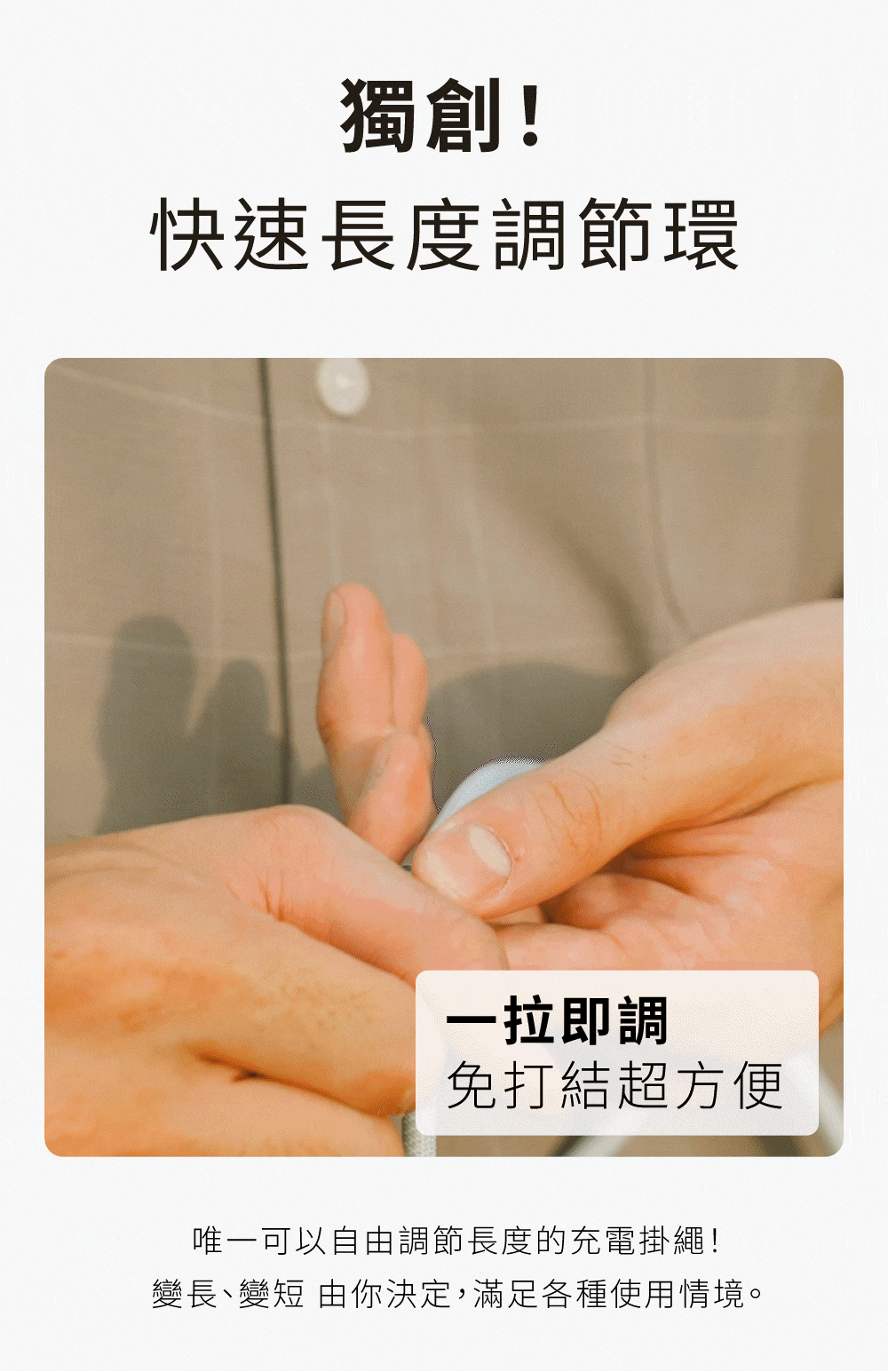 全新推出「繩來運轉 Velvet Strap Pro」結合充電線功能,讓生活更加便捷。