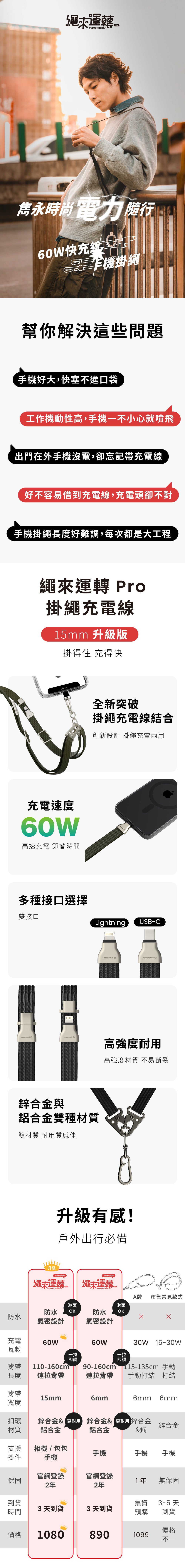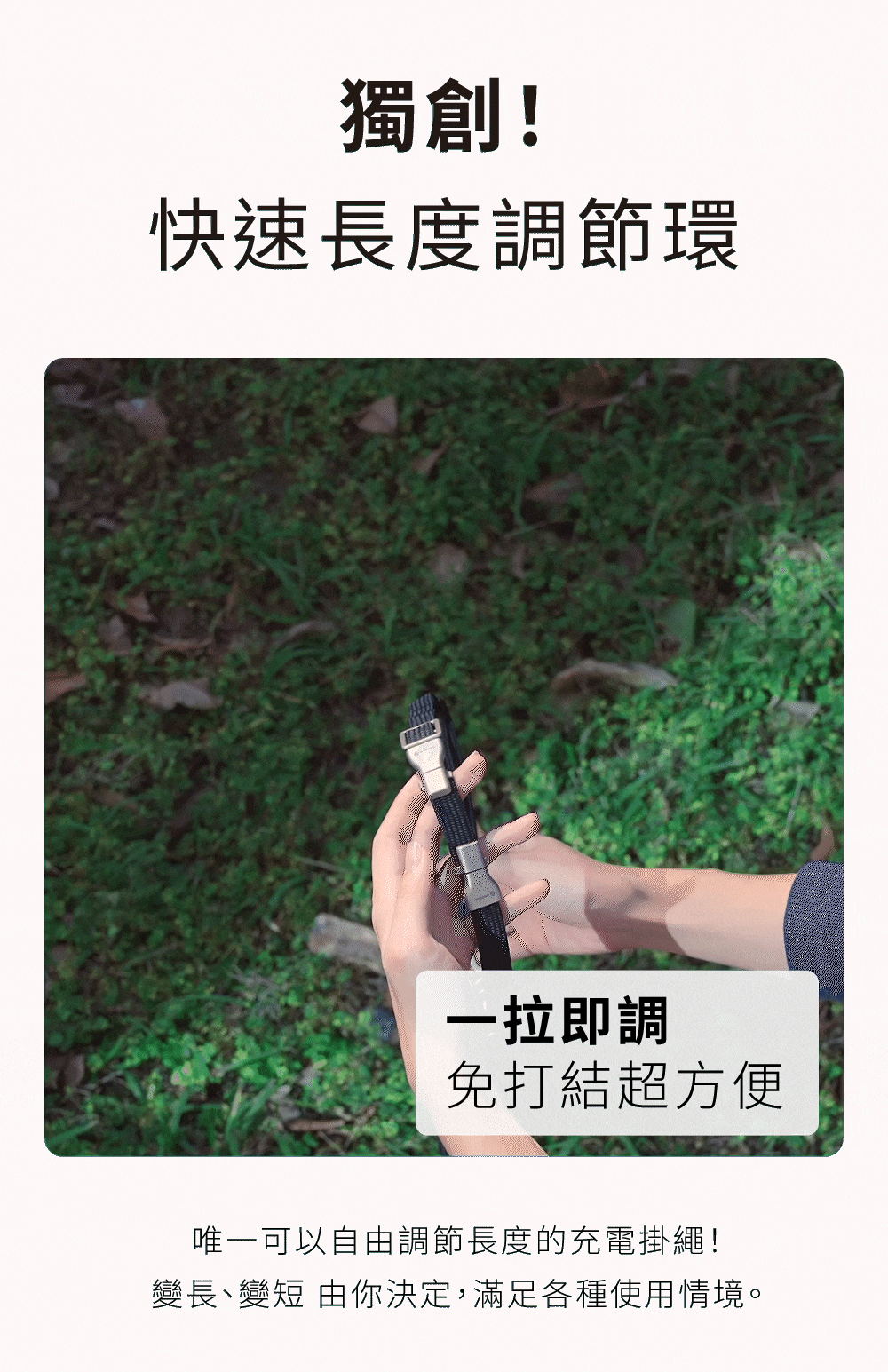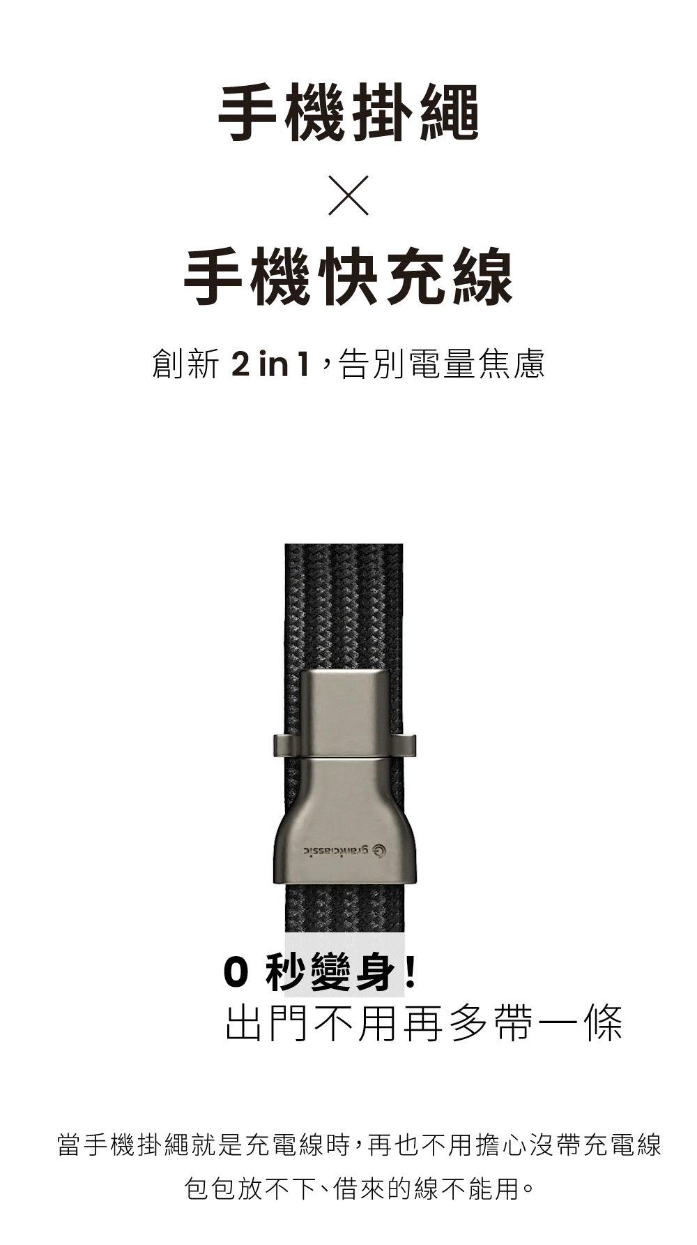 • 全新突破 掛繩充電線結合:創新設計,掛繩充電兩用。
